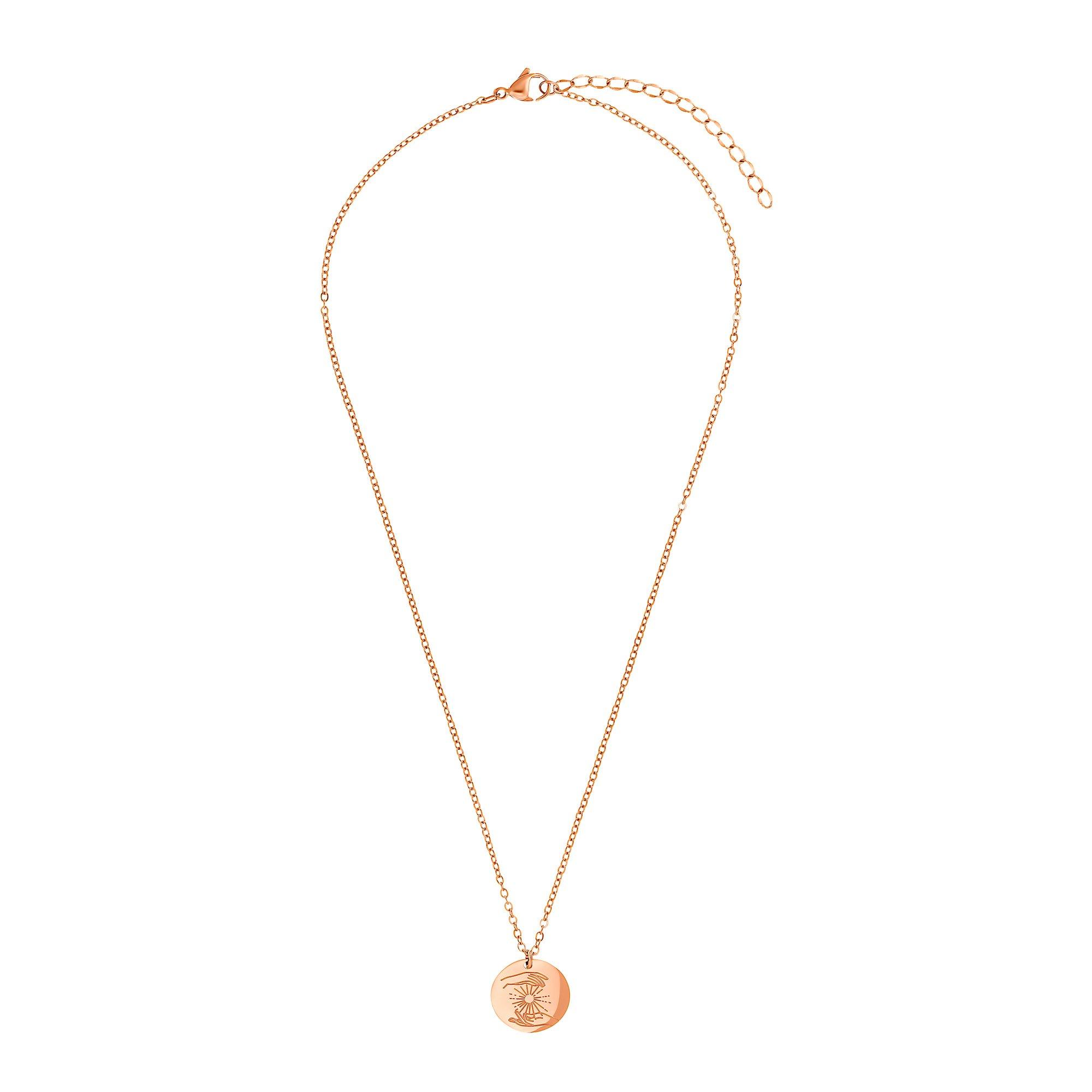 Here comes the sun! Du hast nicht nur ein sonniges Gemüt, sondern bezauberst durch Ausgeglichenheit und eine fast schon meditative Ausstrahlung. Deine Freunde wissen deine Ruhe, dein stets offenes Ohr und deine Freundlichkeit zu schätzen. Unterstreiche deine Persönlichkeit mit Symbolschmuck wie diesem: Der Anhänger zeigt eine Sonne, die von zwei Händen in der Balance gehalten wird. Die Kette ist dein Talisman und verleiht dir Kraft, wenn deine unendlichen Grenzen der Geduld doch einmal erreicht werden. Der edle Glücksbringer mit der Sonnengravur ist ein tolles Geschenk, das Wertschätzung ausdrückt. Die Geschenkverpackung gibt es kostenlos dazu.