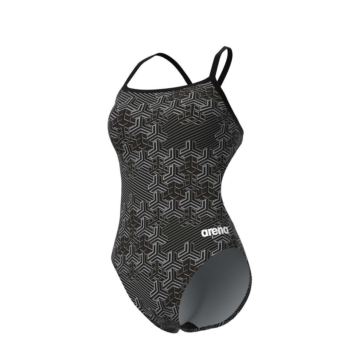 Der Kikko Pro Einteiler-Badeanzug präsentiert sich mit einem dynamischen geometrischen Muster und bietet einen stilvollen Look für Schwimmaktivitäten und intensive Trainingseinheiten. Er ist aus MaxLife Eco Material gefertigt, um die Chlorbeständigkeit zu maximieren. Das Design umfasst schmale Träger, einen offenen Rücken und einen hohen Beinausschnitt für optimale Bewegungsfreiheit. Die Vorderseite ist für zusätzliche Abdeckung gefüttert.