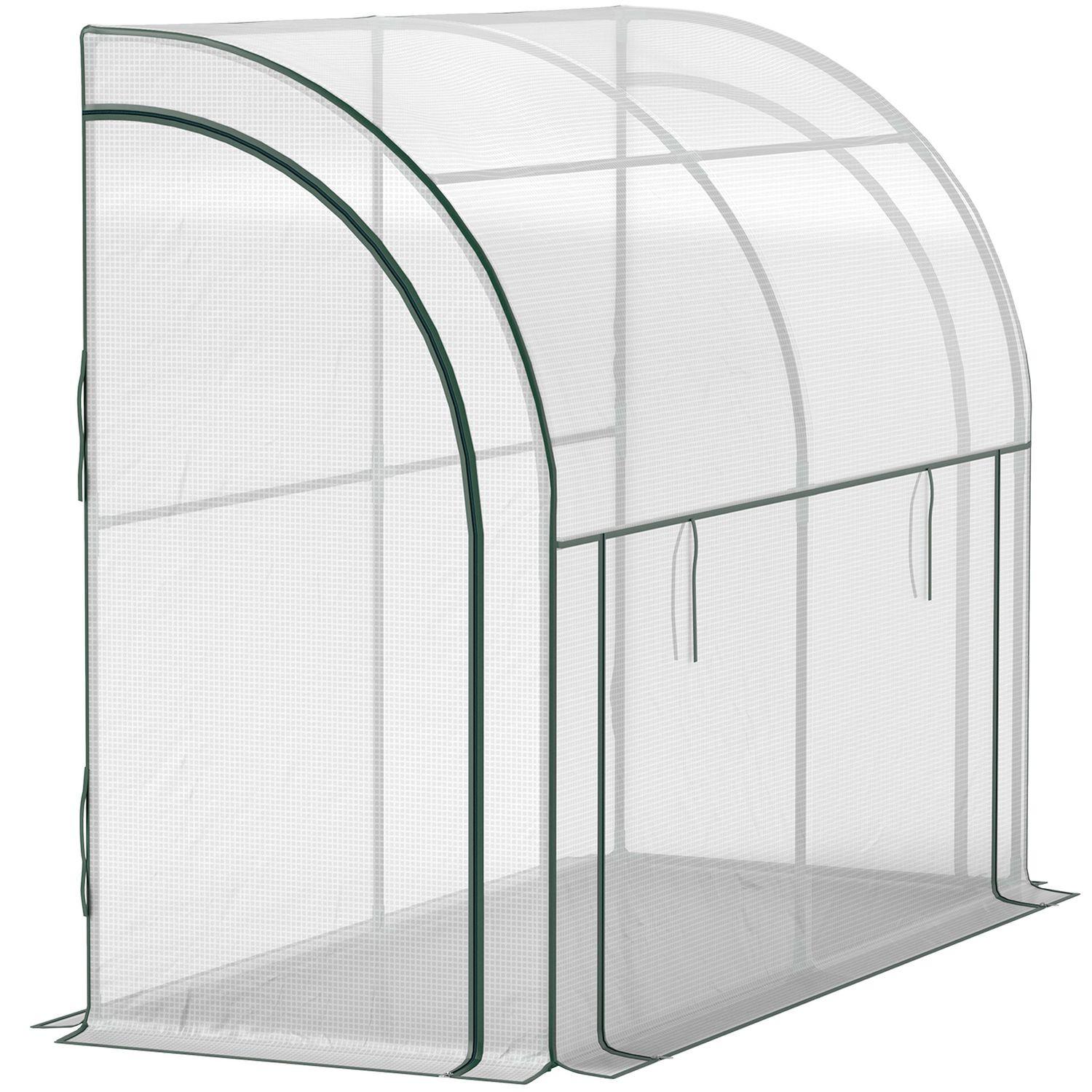 Die UV-beständige Abdeckung dieses Gewächshauses soll Ihre Pflanzen vor schädlichen Sonnenstrahlen schützen, Verbrennungen verhindern und die Lebensdauer Ihrer Pflanzen verlängern. Die verstärkten Kanten der Abdeckung sind so gefertigt, dass sie ein Einreißen verhindern und so Haltbarkeit und Langlebigkeit gewährleisten. Mit zwei Türen und einer aufrollbaren Vorderwand ist der Zugang zu Ihren Pflanzen ein Kinderspiel und Sie können die Belüftung ganz einfach an die Bedürfnisse Ihrer Pflanzen anpassen. Die mitgelieferten Wandmontagesätze und U-förmigen Pfähle sorgen für zusätzliche Stabilität und Sicherheit und machen dieses Gewächshaus zu einer zuverlässigen Wahl für alle Wetterbedingungen.