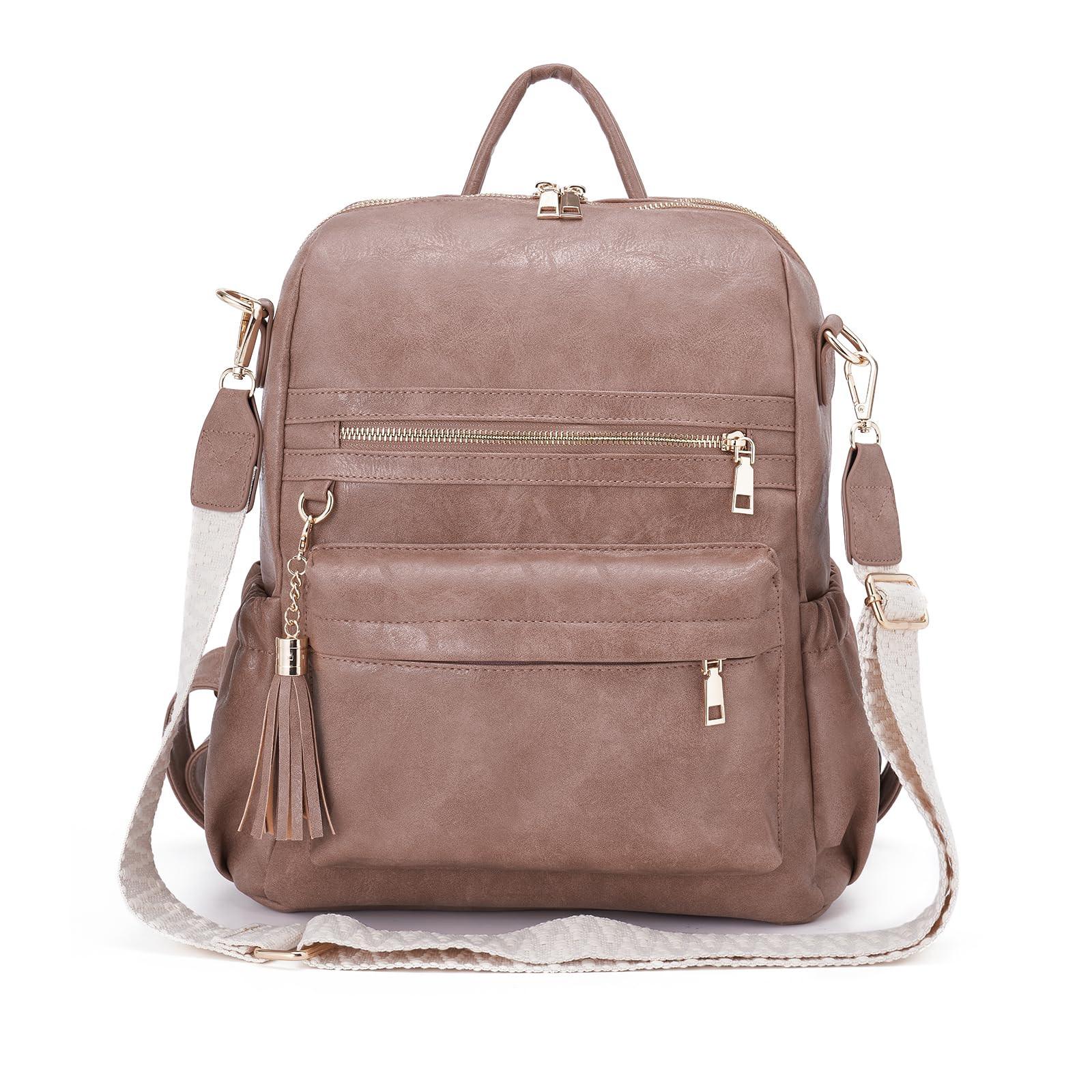 * Unser mittelgroßer, eleganter Damenrucksack ist sorgfältig aus hochwertigem PU-Leder gefertigt, das für seine Strapazierfähigkeit, Wasserfestigkeit und geschmeidige Textur bekannt ist. Das Innenfutter aus festem Stoff sorgt für eine zusätzliche Schicht Luxus. Die Liebe zum Detail zeigt sich in leichtgängigen Reißverschlüssen, robusten und bequemen Trägern und makellosen Nähten. * Mit den Maßen (L) 12,6" x (B) 5,9" x (H) 13,4" verfügt er über einen gut organisierten Innenraum mit mehreren Taschen: 2 auf der Vorderseite, 2 auf jeder Seite, 3 innen und eine Anti-Diebstahl-Tasche auf der Rückseite. Außerdem bietet der modische Rucksack bequem Platz für einen 14"-Laptop, perfekt für Arbeit, Reisen und den täglichen Gebrauch. * Diese 2-in-1-Rucksacktasche für Frauen mit Schulterriemen wurde speziell für die Bedürfnisse von Frauen entwickelt und kann auf drei verschiedene Arten getragen werden. Verwenden Sie sie als schicke Umhängetasche oder verwandeln Sie sie mühelos in einen Reiserucksack, ganz nach Ihrem Komfort und Stil. Der modische, abnehmbare Riemen setzt einen farblichen Akzent und kann mühelos abgenommen werden.