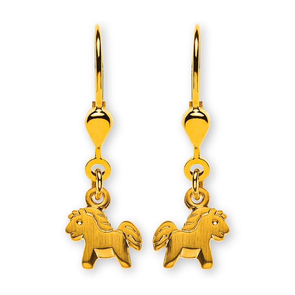 MUAU Schmuck Ohrhänger Pferd Gelbgold 750 Brisur 25mm