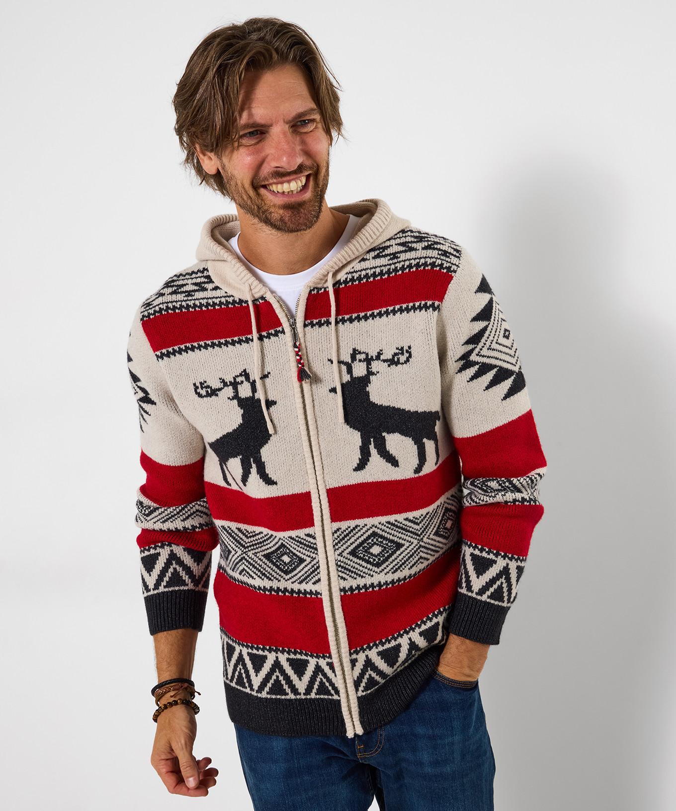 Dieser Hoodie mit festlichem Hirschmuster ist eine unverwechselbare Ergänzung für jede Garderobe. Das durchgehende Reissverschluss-Design ermöglicht vielseitiges Styling und einfaches Layering.