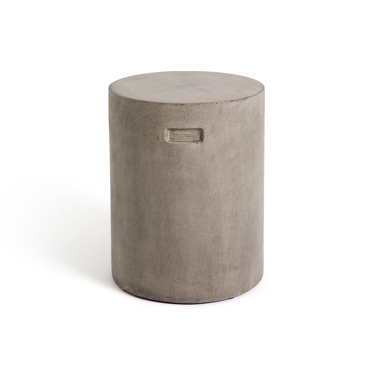 Runder Beistelltisch Raskin mit Griffen und Unfinished-Oberflächen in unregelmässiger Optik. Das leichte Modell lässt sich einfach umstellen und ist ideal für die Verwendung im Aussenbereich.