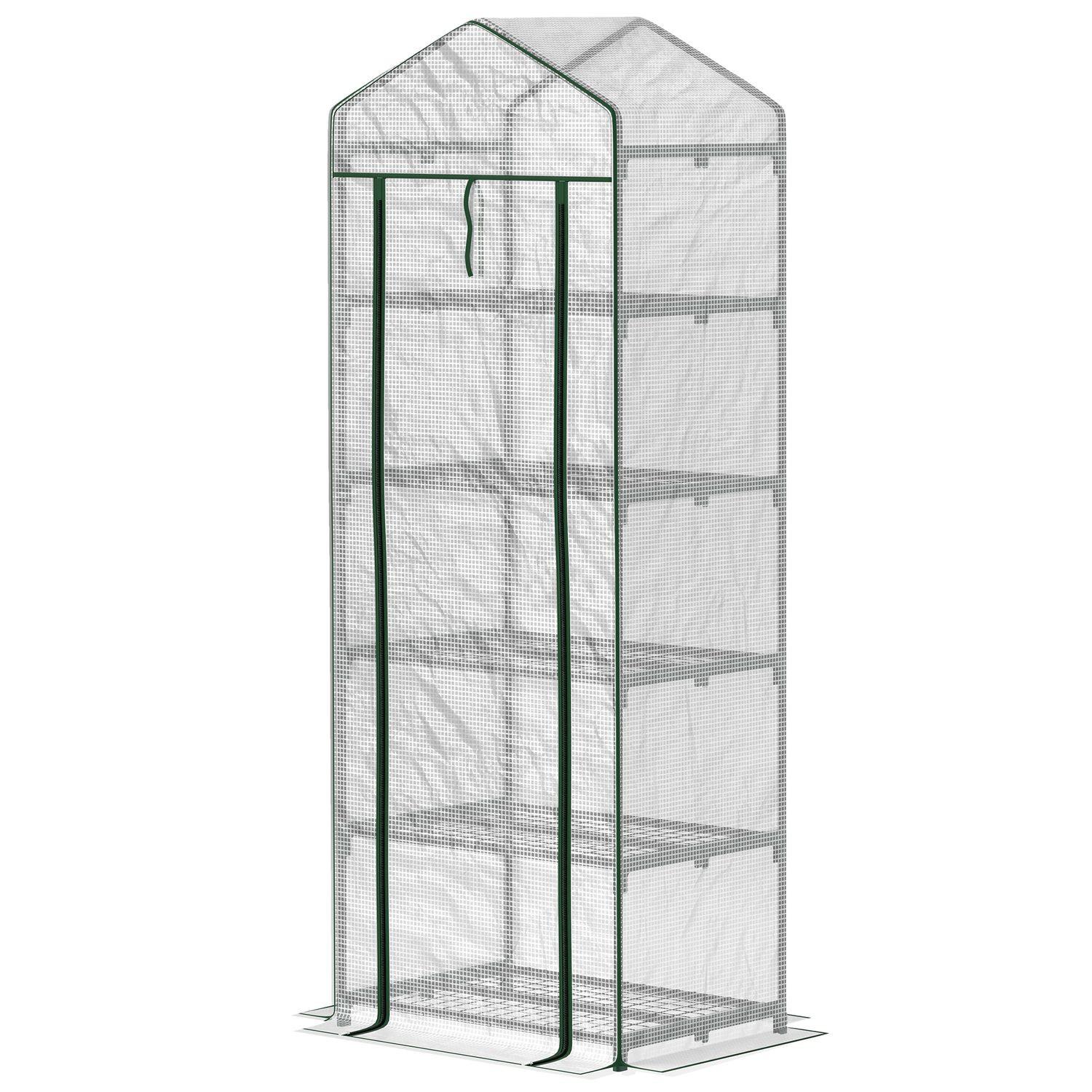 Northio Gewächshaus mit Rolltür, Regale, winterfest Foliengewächshaus aus Stahl, Treibhaus für Balkon, Garten, Tomatenhaus 69 x 49 x 193 cm, Tomatengewächshaus für Tomaten, Gemüse, Blumen, Weiß Aosom