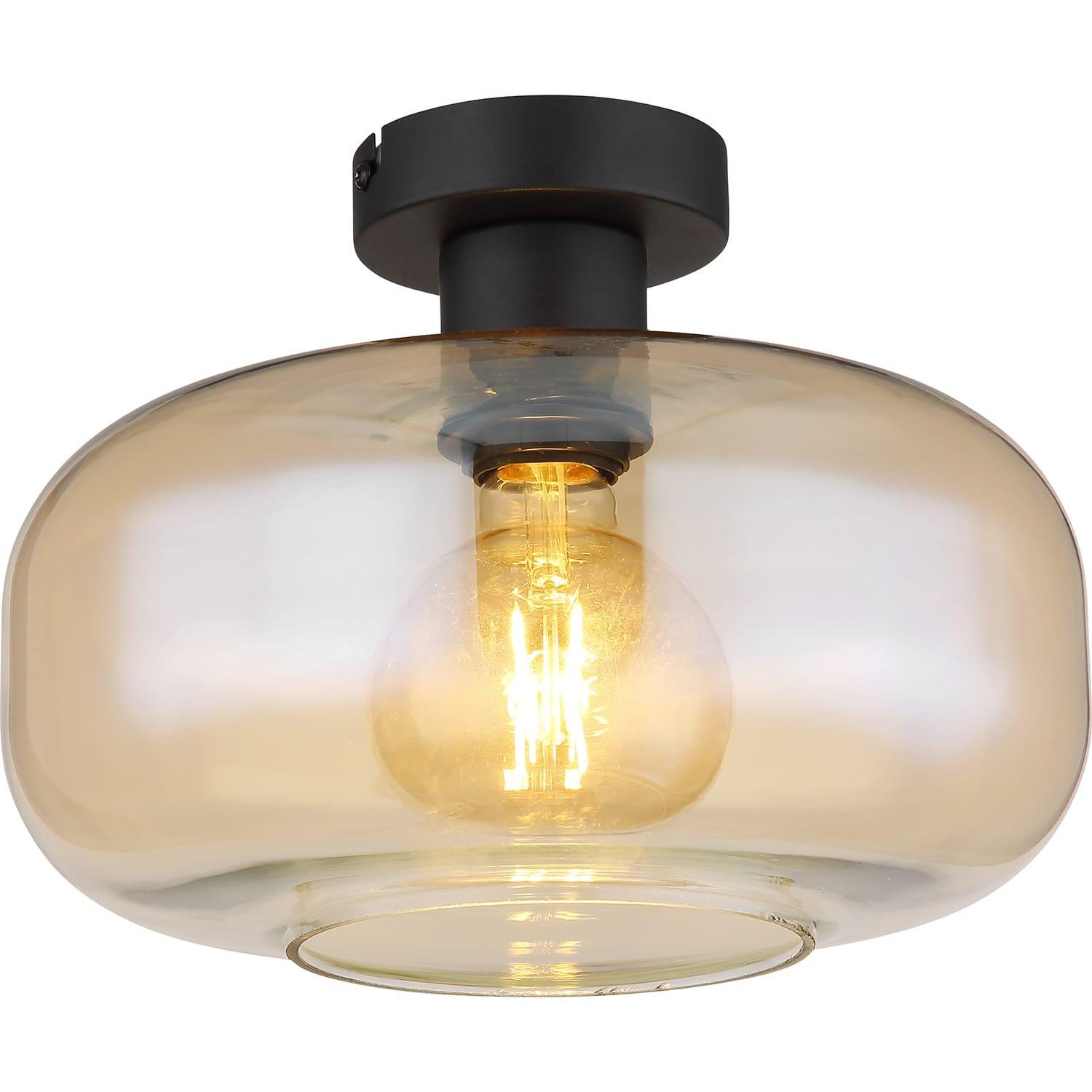 Deckenleuchte Metall schwarz matt, Glas amber, : 280mm, H: 205mm, exkl. 1x E27 40W 230V.