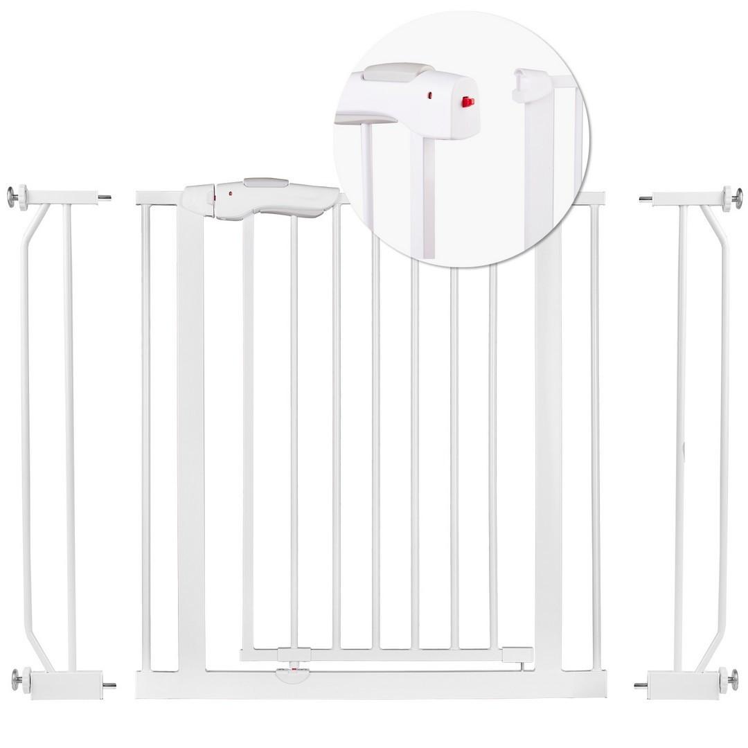 Dieses Schutzgitter wird ohne Bohren installiert, sodass Sie sich keine Sorgen über Schäden an Wänden oder Türrahmen machen müssen. Es ist in einer universellen weißen Farbe erhältlich, die sich in jedes Dekor einfügt. Durch die verstellbare Breite kann es in Türen und Durchgängen zwischen 75 und 105 cm montiert werden.