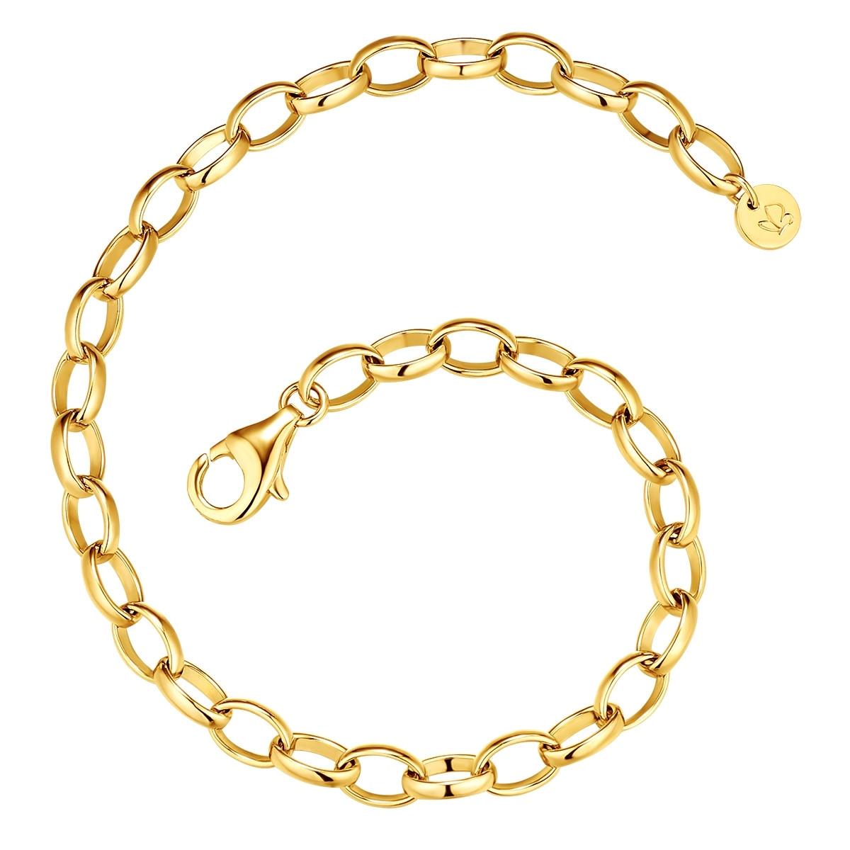 Du bist auf der Suche nach einem Basic-Armband für deine Charm-Sammlung? Dieses Gliederarmband des Labels Glanzstücke München ist der perfekte Carrier. Egal ob du gerne Solo-Charms als Symbol für deine Persönlichkeit trägst oder ob du ein Fan von bunten Bettelarmbändern bist: Hier kannst du nach Lust und Laune kombinieren und deine Lieblingsanhänger einhaken. Auch ganz ohne Charms - beispielsweise in Armcandys - ist das Gliederarmband eine Zierde für dein Handgelenk. Das Armband ist aus Sterling Silber gefertigt und mit warm schimmerndem Gelbgold veredelt. Ein Karabinerverschluss sorgt für einfaches An-und Ablegen.