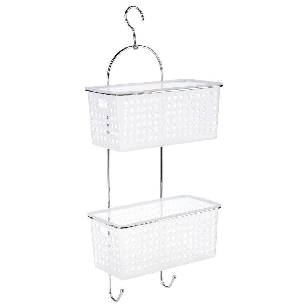 Duschregal aus Edelstahl mit zwei abnehmbaren Kunststoffkörben und zwei Haken an der Unterseite. Die Körbe haben Abflusslöcher, damit das Wasser ablaufen kann hervorragend zum Aufbewahren von Shampoo und Duschgel. Das Regal wird mit einem eingebauten Haken aufgehängt.