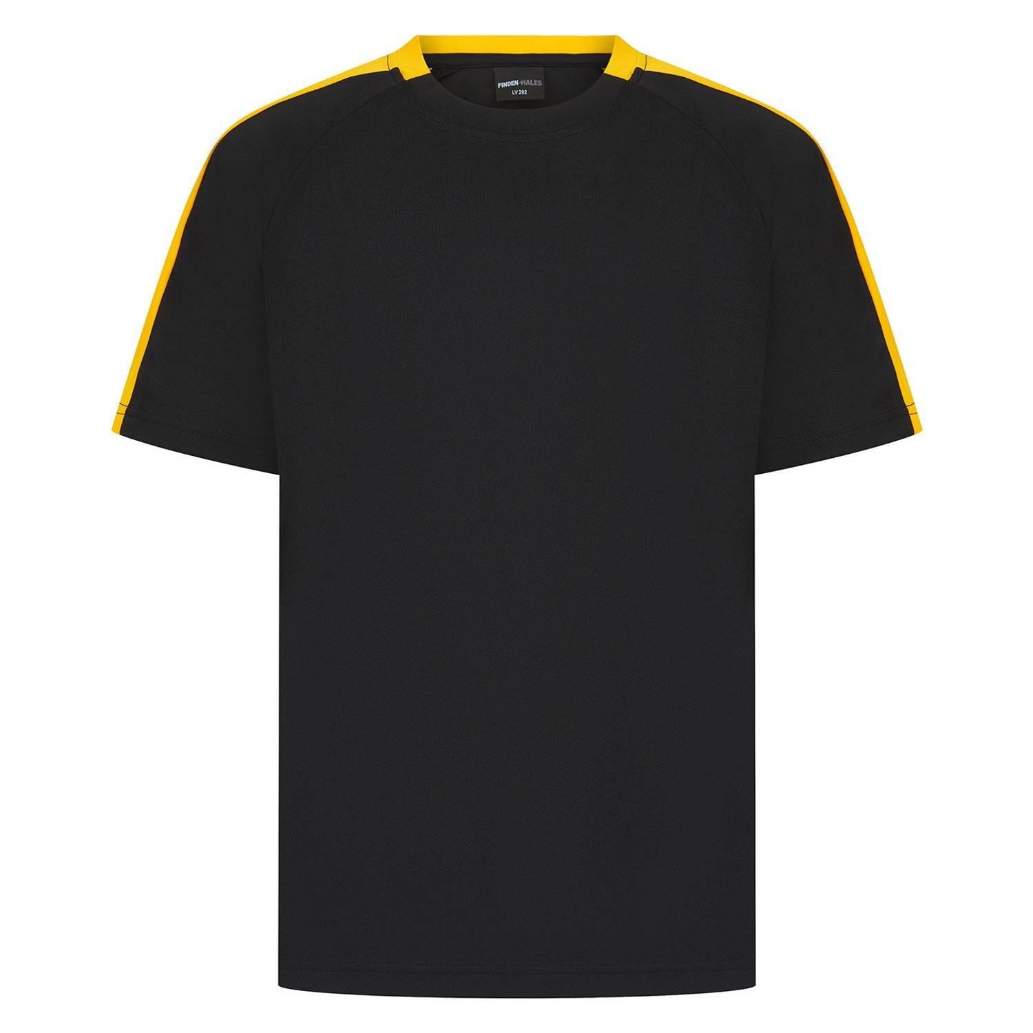 100% Polyester. Gewebetechnik: Atmungsaktiv, Feuchtigkeitsabweisend, Schnell trocknend. Gewebe: Single Jersey. Design: Kontrasteinsatz. Abreiß-Etikett. Passform: Sportlich. GSM (Gramm pro Quadratmeter): 160. Nachhaltigkeit: Amfori-Freigabe, BSCI, Oeko-Tex Standard 100 zertifiziert, Sedex, WRAP Zertifikat. Rundhalsausschnitt, Besatz im gleichem Stoff, Zweiteiliger Kragen. Raglanärmel, Kurzärmlig. Bündchen: Doppelnähte. Saum: Doppelnähte. 116: 66 cm. 158: 86,36 cm. 146-152: 81,28 cm. 140: 76,2 cm. 128: 71,12 cm. 104: 61 cm.