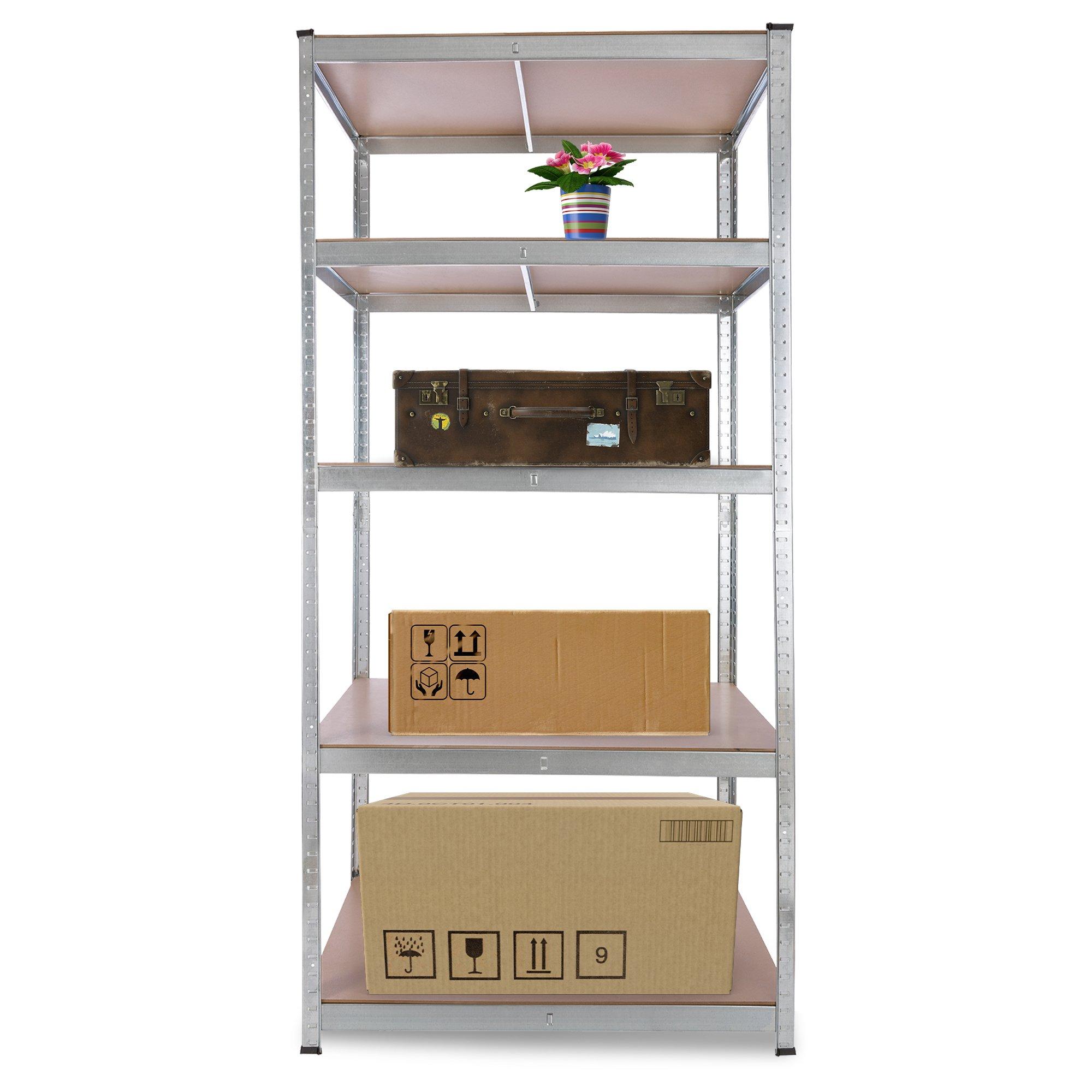 [ABMESSUNG] (HxBxT) 200 x 90 x 60 cm | Traglast 875 kg | Stecksystem ohne Werkzeug | starke MDF Böden | 5 Böden | Farbe verzinkt | Extra große Materialstärke des Gestells von 0,7 mm