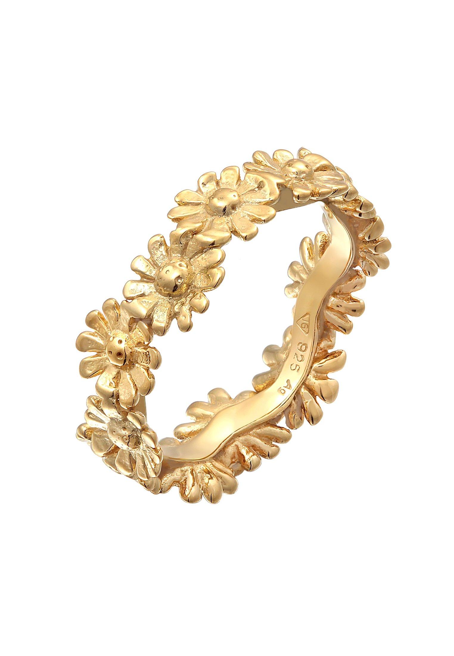 Dieser inspirierende Damen Ring, aus feinstem 925er Sterling Silber/vergoldetem 925er Sterling Silber handgefertigt, wird von Gänseblümchen geziert. Die Ringschiene dieses hippen Bandringes erstrahlt im zarten Blütenzauber. Ein Schmuckstück das perfekt den Flower-Power Look des Sommers unterstreicht.