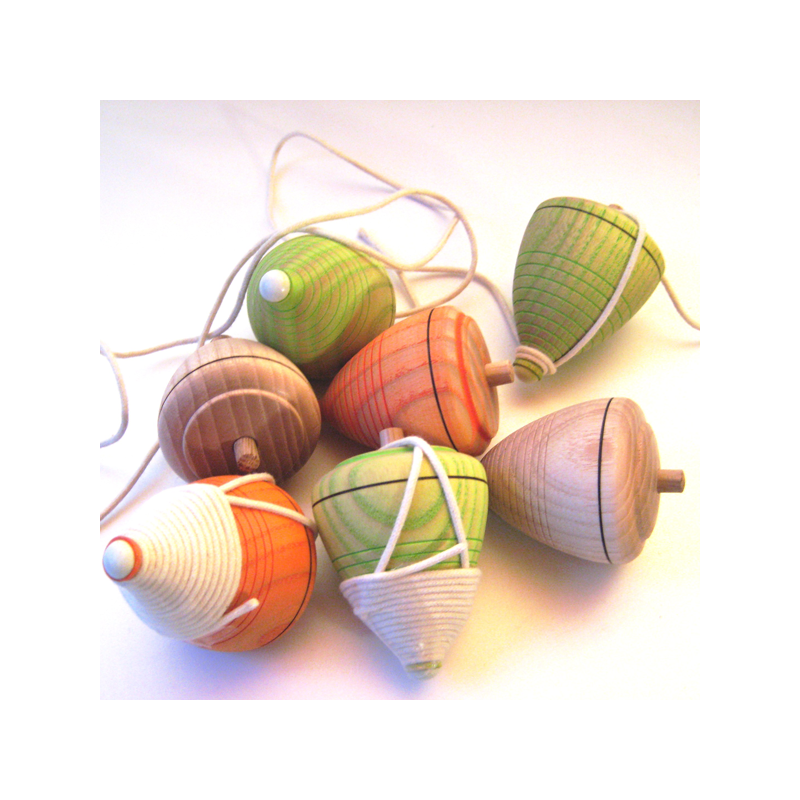 Schwieriger Wurfkreisel, der dem Profi ab 9 Jahren, Geschick und Können abverlangt. Durchmesser 48 mm, Esche gefärbt, Schwierigkeitsgrad 6.