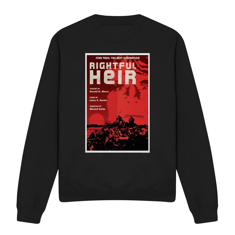 Dieses Sweatshirt zeigt einen auffälligen Grafikdruck, inspiriert von "Star Trek: The Next Generation" Staffel 6 Episode 23, "Rightful Heir". Das Design fängt die Essenz der Episode mit einem kräftigen Rot- und Schwarzschema und dramatischer Bildsprache ein, was es zu einem unverwechselbaren Stück für Fans macht.