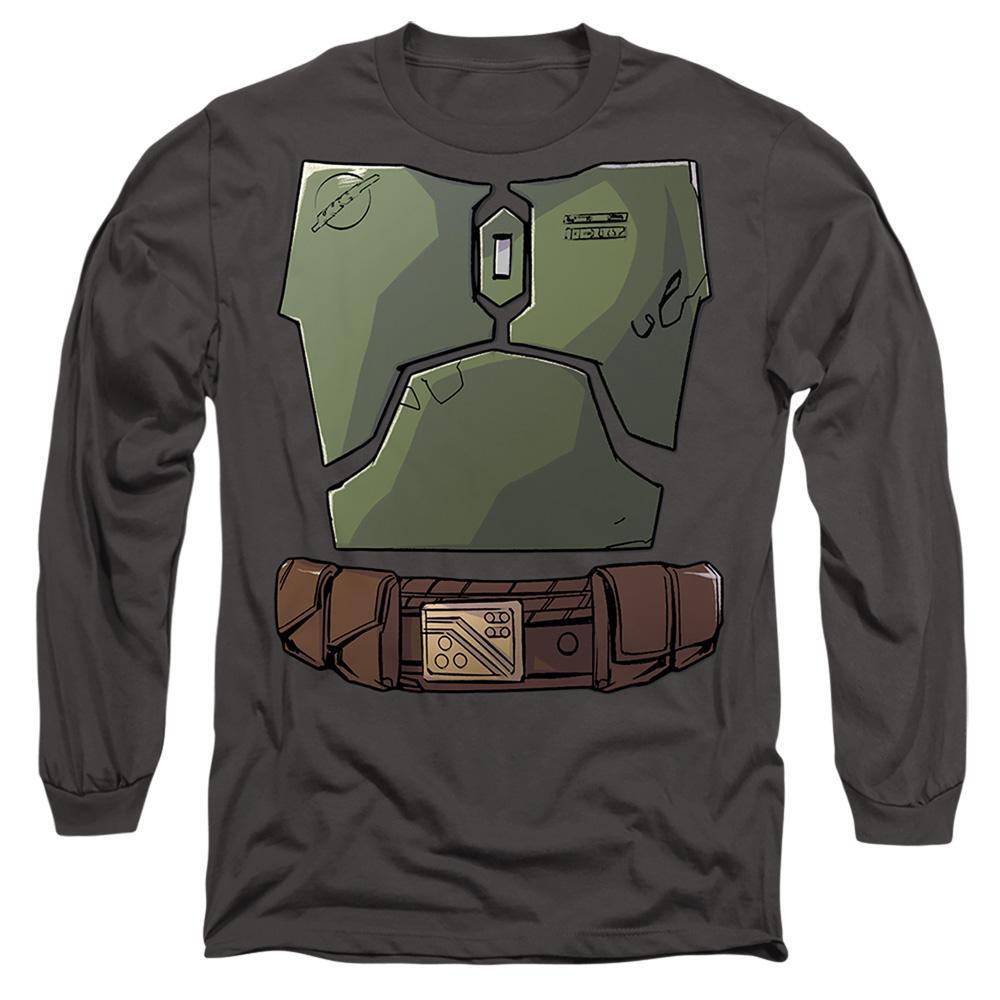 Dieses Langarm-T-Shirt zeigt einen grafischen Druck von Boba Fetts Rüstung auf der Vorderseite und bietet ein unverwechselbares und wiedererkennbares Design. Das Shirt ist mit einem klassischen Rundhalsausschnitt und langen Ärmeln ausgestattet und bietet eine bequeme, normale Passform für den Alltag.