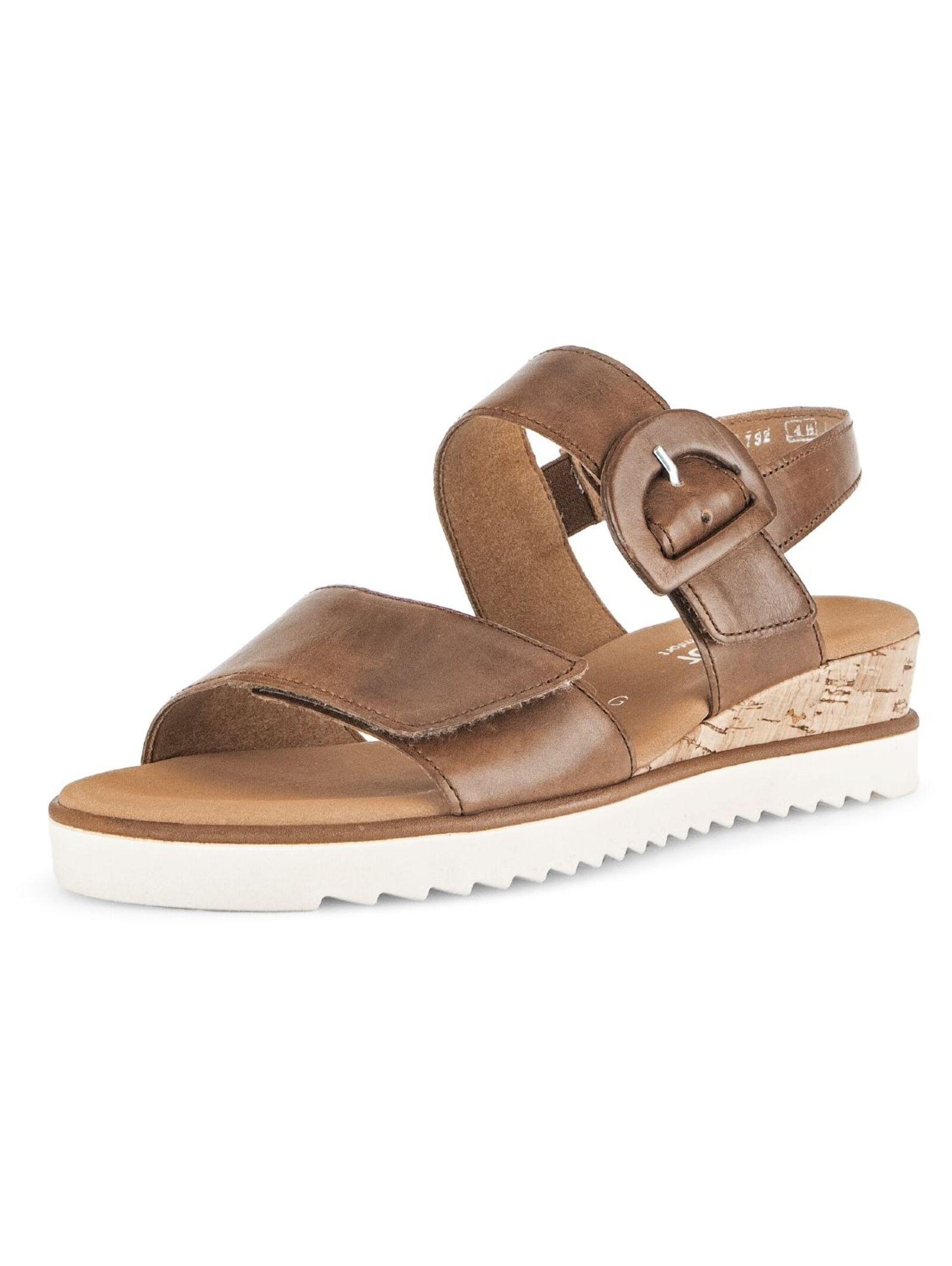 Ein cooler Look gelingt mit diesen Gabor Keilsandalen aus hochwertigem Leder. Garantiert ein Blickfang ist dieser Schuh dank der auffälligen Schnalle und der robusten Keilsohle in angenehmer Laufhöhe. Der praktische Klettriemen erleichtert zudem das An- und Ausziehen.