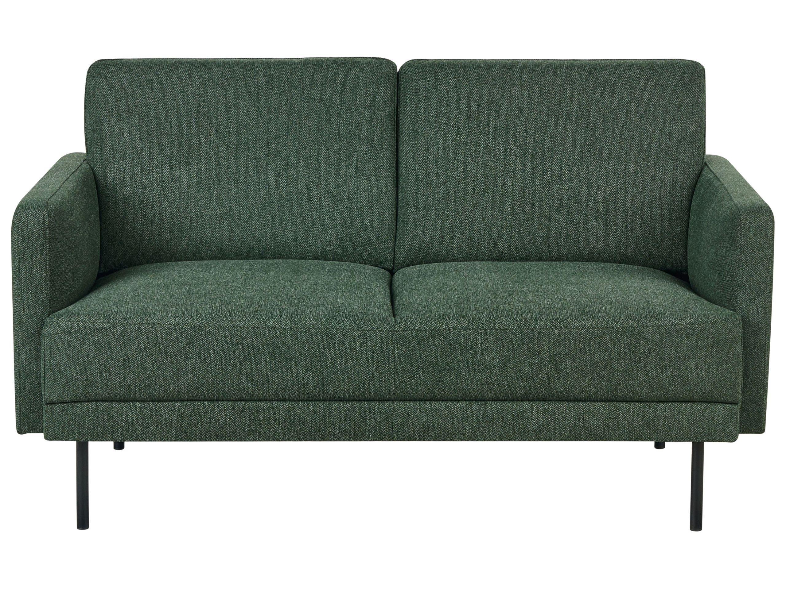 Gemütliches, dunkelgrünes 2-Sitzer Sofa mit dicker Polsterung und hohen Metallbeinen. Peppen Sie Ihre Sitzecke auf und sorgen Sie mit diesem 2-Sitzer Stoffsofa für Gemütlichkeit und Stil. Die Couch ist sehr dick gepolstert und mit einem strapazierfähigen Stoff bezogen, der sich angenehm weich und luxuriös anfühlt. Dieses elegante Flair des Polstersofas wird durch die schlanken, schwarzen Beine unterstrichen, die aus langlebigem und robustem Metall bestehen. Die dicken Sitzpolster sorgen für ein gemütliches Sitzgefühl bei jedem Fernsehabend. Das Modell bietet Platz für bis zu 2 Personen, sodass Sie es sich mit Ihren Liebsten bequem machen können.