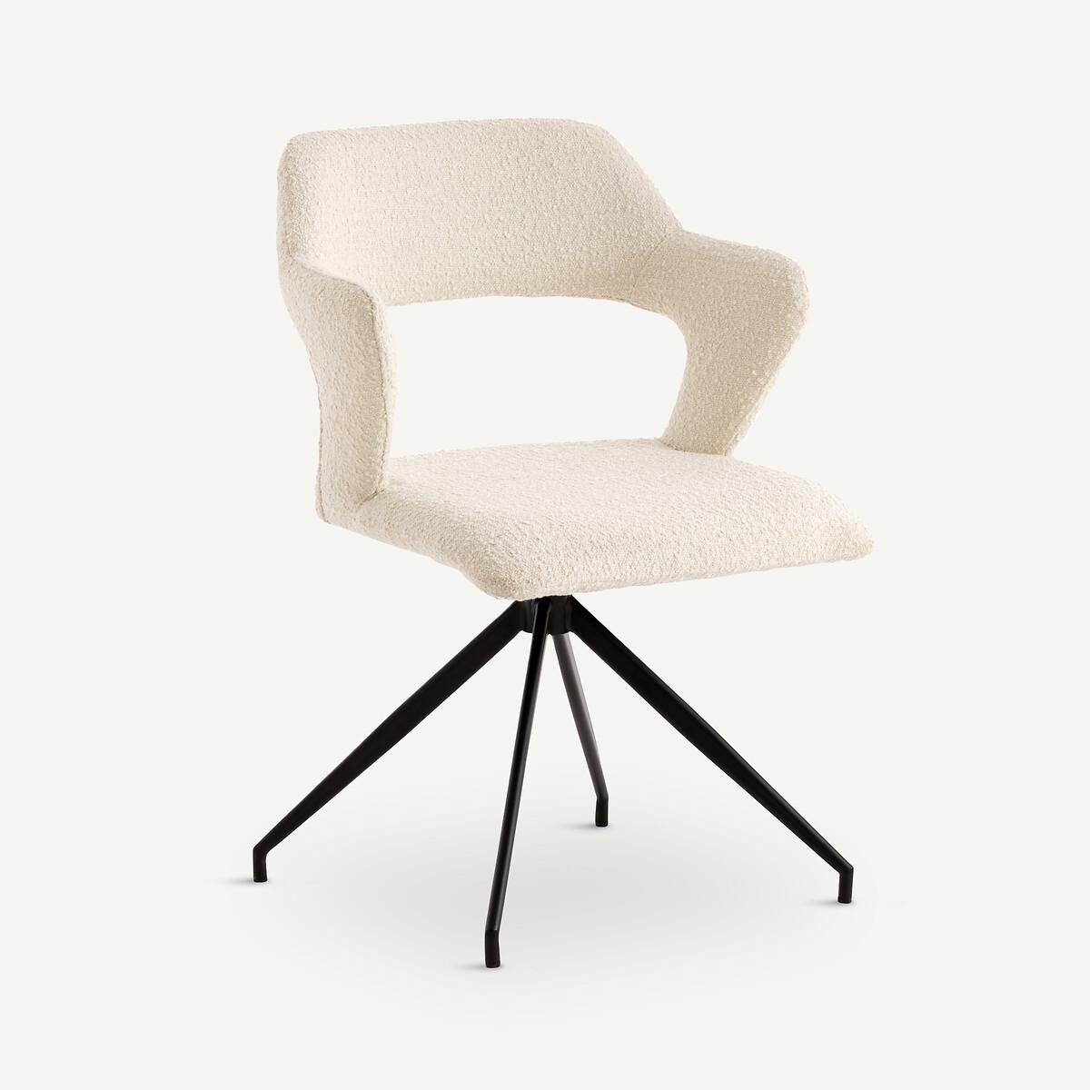 Raffinierter Bouclé-Bezug, 360°-Rotation. Dieses Sitzmöbel verbindet Design und echten Komfort. Es kann ganz nach Bedarf als Esszimmer- oder als Schreibtischstuhl verwendet werden.