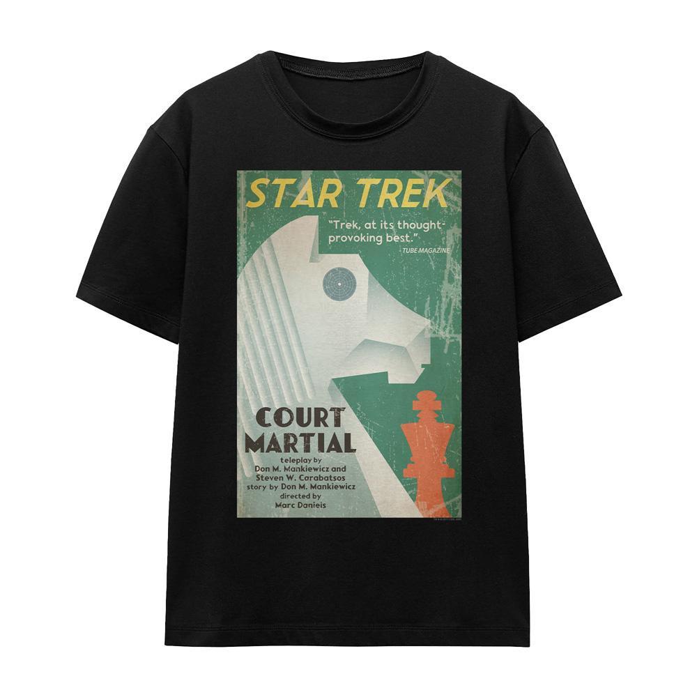 Dieses T-Shirt zeigt einen Grafikdruck, inspiriert von "Court Martial", Episode 20 von Star Trek: The Original Series. Das Design fängt die Essenz der klassischen Science-Fiction-Show ein und ist eine unverwechselbare Ergänzung für die Garderobe jedes Fans.