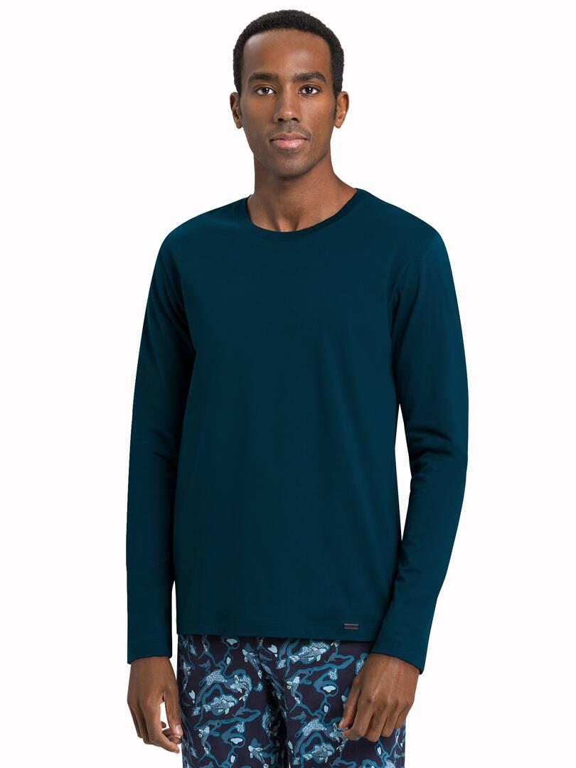 Dieses modern geschnittene Langarm-Shirt verfügt über einen hohen Rundhalsausschnitt und eine blickdichte Stoffqualität. Es ist ein zuverlässiger Begleiter zum Relaxen, Reisen oder für sportliche Aktivitäten.