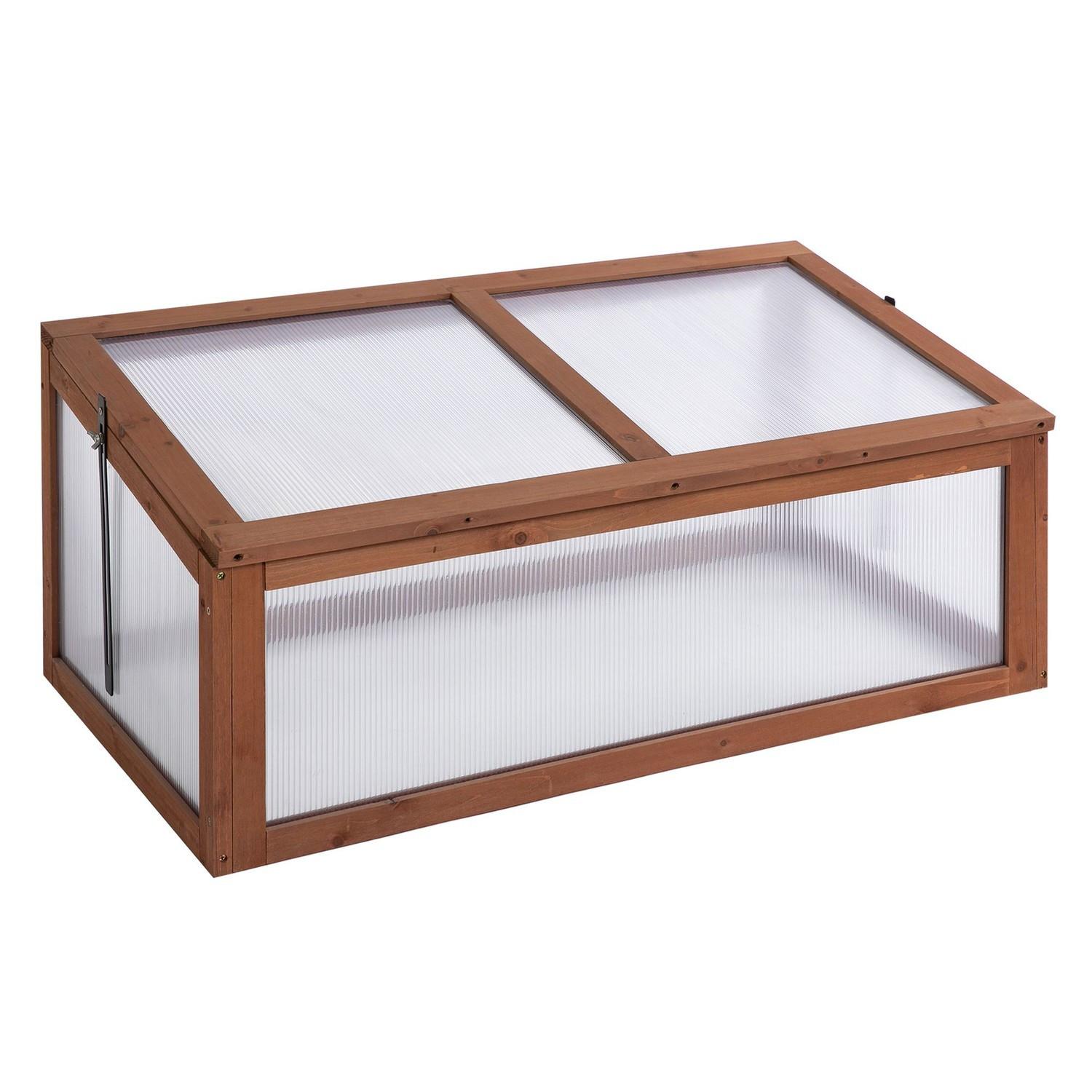 Northio, Frühbeet Holz, Mini Gewächshaus 100 x 65 x 40 cm, Treibhaus mit Abdeckung, UV Schutz, lichtdurchlässig Frühbeetkasten, winterfest Hochbeet für Garten, Braun