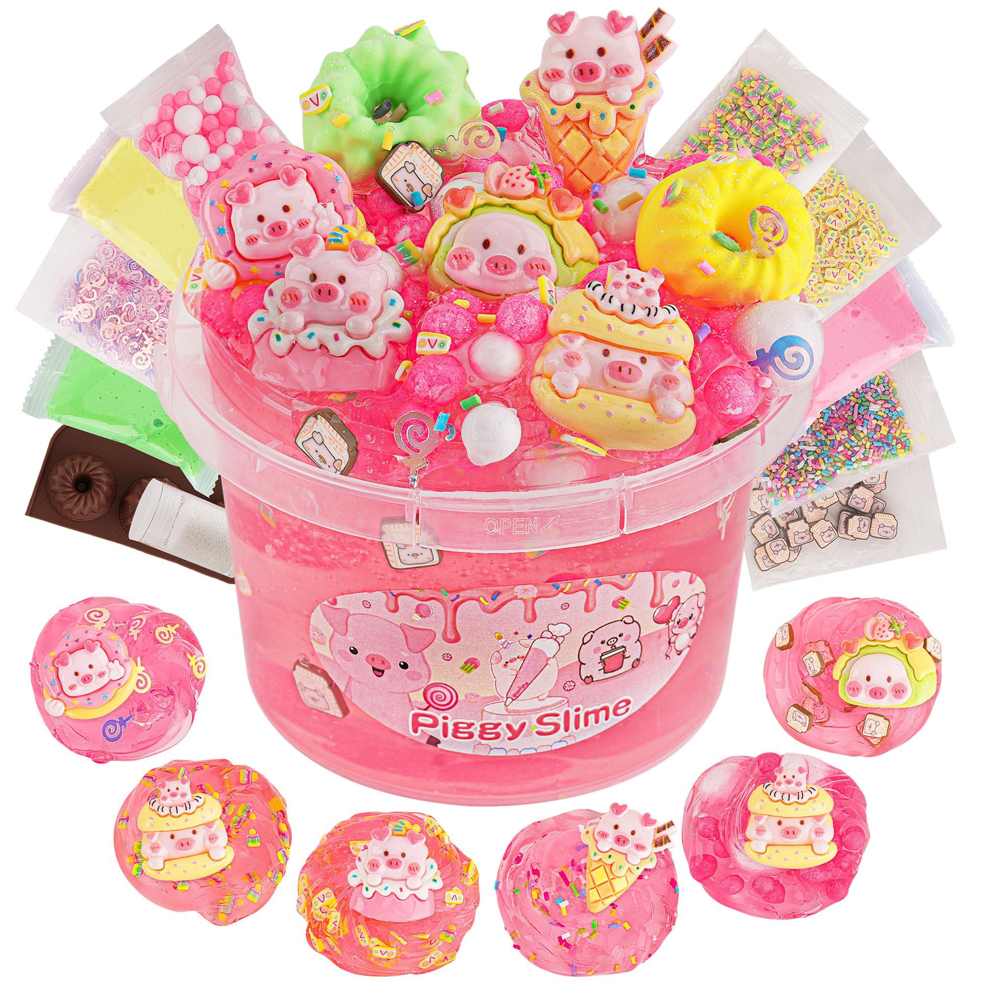 Unser Kinderschleim-Set enthält 300 ml rosa, klaren Schleim, 10 Päckchen Schleimzusätze und 5 niedliche Ferkelschleim-Anhänger. Dieses Dessert-Schweinchen-Thema-Klarschleim-Set enthält eine Reihe von niedlichen Schleim-Anhängern und eine Fülle von weichen Keramikteilen, mit denen du deine eigenen einzigartigen Schleim-Kreationen kreieren kannst. Unser rosafarbener, klarer Schleim ist superweich und dehnbar. Wenn er in die Schaumstoffkugel gegeben wird, erzeugt er ein zischendes Blasengeräusch, indem er sich ständig dehnt und fest zusammendrückt, um sich zu lösen. Unser Schweinchen-Schleim-Set enthält 1 Packung rosa Schleim, 1 Packung gelben Schleim und 1 Packung grünen Schleim sowie eine Silikon-Dessertform zum Modellieren. Sie können nicht nur verschiedene Arten von Desserts formen, sondern auch die Knetmasse mit klarem Schleim mischen, um eine weitere Zutat hinzuzufügen. Unser Schleim für Kinder ist aus hochwertigen Rohstoffen hergestellt, nicht klebrig, sicher für Erwachsene und Kinder, aber bitte nicht essen! Bitte beachten Sie, dass Kinder unter dem Alter von 3 Jahren unter der Aufsicht der Verwendung. Dieser durchsichtige Schleimsatz mit der Vielfalt der Schleimzusätze und den niedlichen Schleimanhängern, es ist ein Partyfavorit für die Kinder und eine große Geschenkwahl für alle Arten der Feste, Kindergeburtstagspartybegünstigungen, Halloween, Weihnachten, Ostern. Größe:12.7х10х10cm