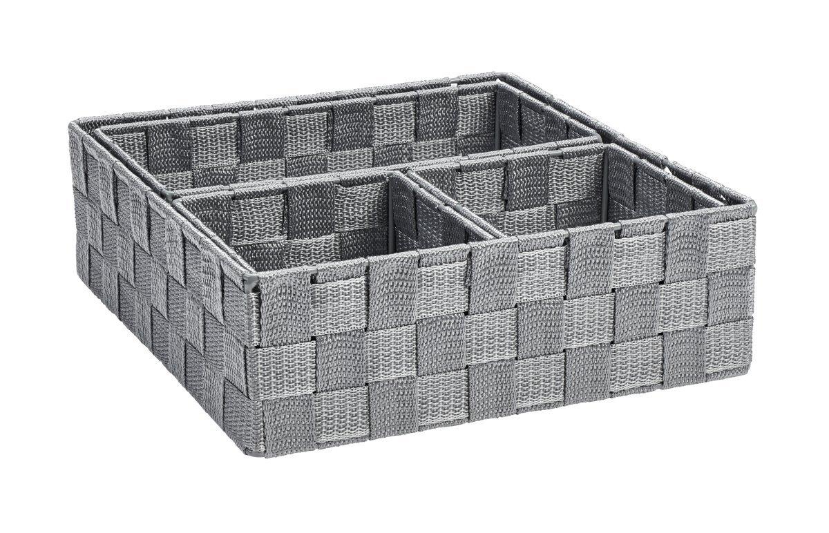 diaqua® Aufbewahrungsset Irina grau 26 X 26 X 8 CM 4 STK¦PCS. - Hochwertiges und geflochtenes 4er Aufbewahrungsset in unterschiedlichen Grössen. Damit ist das Set vielseitig und flexibel einsetzbar. Der Rahmen aus Metall sorgt zusätzlich für Stabilität.