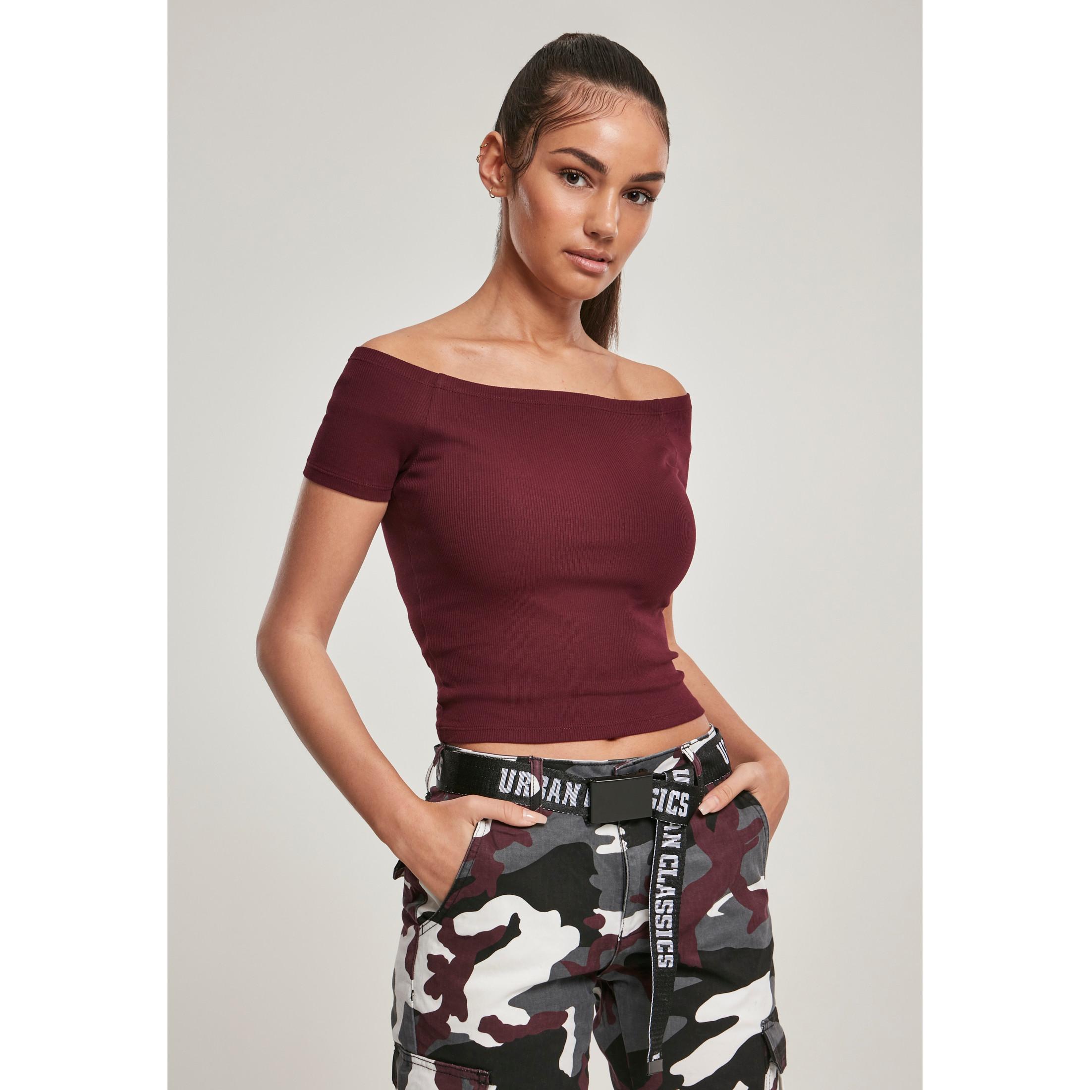 URBAN CLASSICS, Geripptes Crop Top mit asymmetrischem Ausschnitt