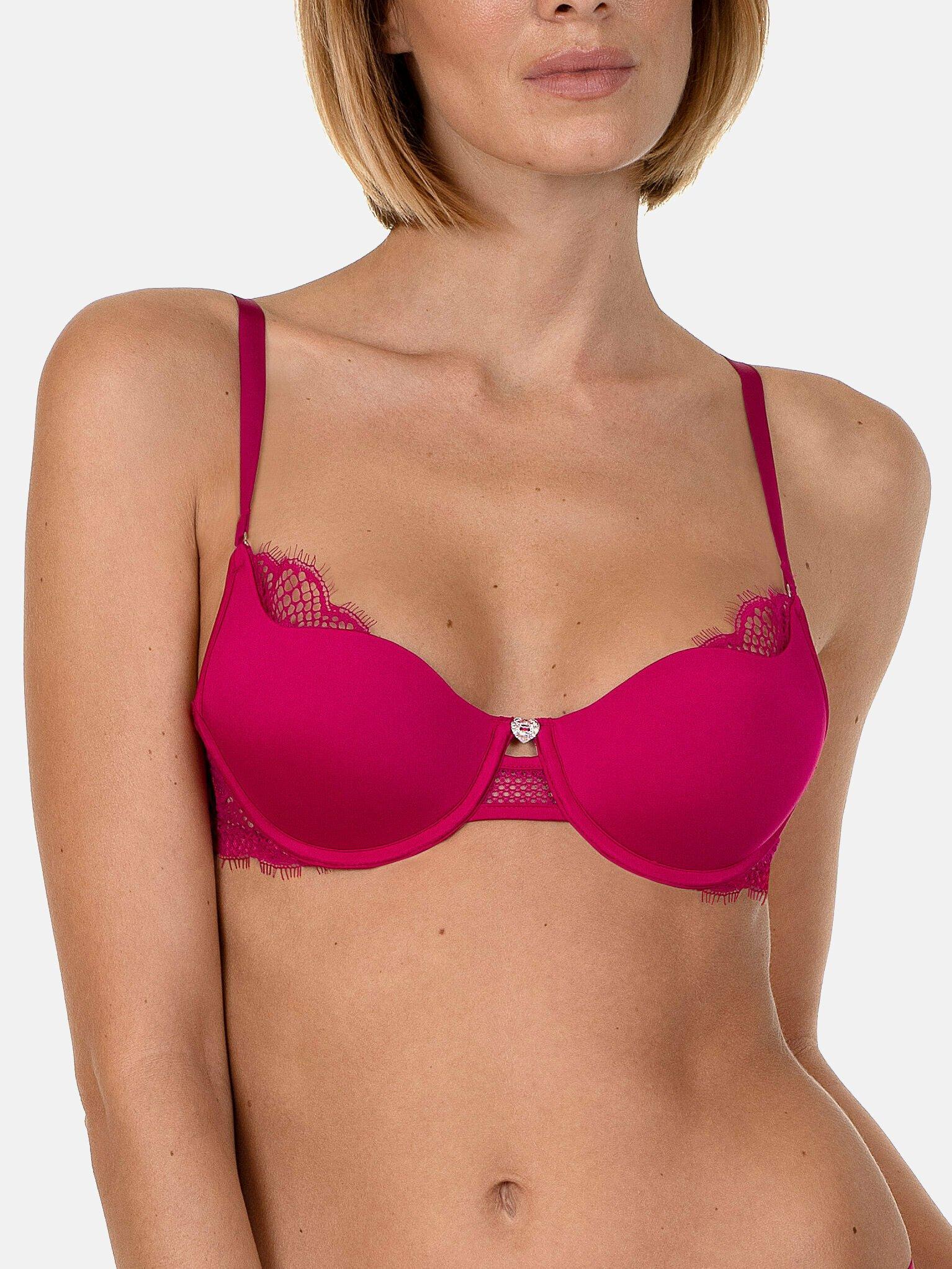 Dieser vorgeformte BH aus der Tender Love Kollektion bietet feminine Lingerie für alle, die luxuriöse Spitze lieben. Der Schaumstoff-BH hat einen modernen Schnitt mit einem wellenförmigen Ausschnitt, während die Cups weich und glatt sind. Swarovski-Kristalle zwischen den Cups sind eine prestigeträchtige Ergänzung. Die Rückseite und die Seiten sind aus zarter Spitze, gefüttert für eine optimale Passform. Die eleganten gebundenen Träger sind nahtlos und haben ein attraktives Spitzendetail am unteren Ende.