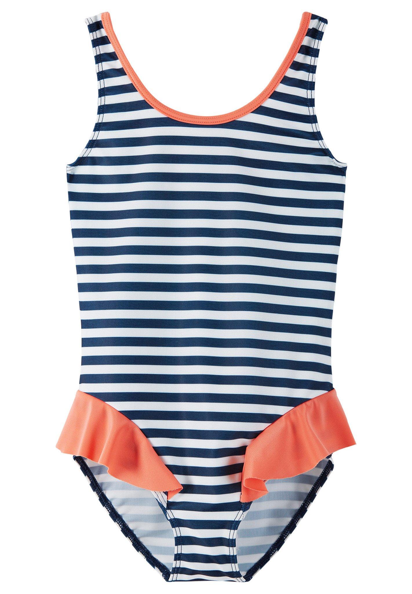 Dieser fantastische Badeanzug ist genau das richtige für sportliche Strandprinzessinen! Der Badeanzug für Kleinkinder ist aus elastischem Sonnenschutz Material mit effektiver UV 50+ Ausrüstung. Das elastische Innenfutter vorne sorgt für hohen Tragekomfort bei den kleinen Schwimmerinnen. Ein niedlicher Rüschenansatz hinten und an den Seiten verleiht dem schnell trocknenden Badeanzug extra Pfiff.