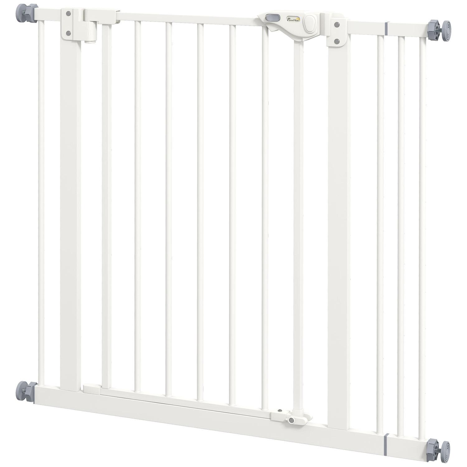 Northio, Türschutzgitter Hunde, Absperrgitter, 74-87 cm, Treppenschutzgitter für Haustier, Hundegitter inkl. Verlängerung, Schutzgitter ohne Bohren, Metall, Kunststoff, Weiß