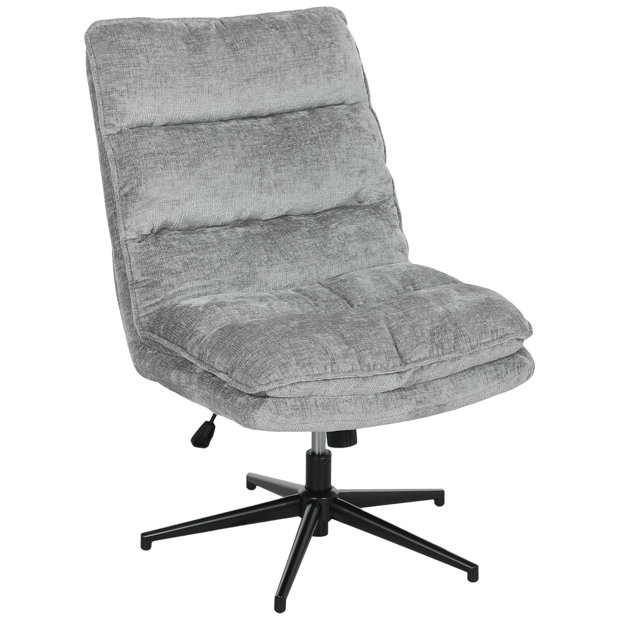 Tauchen Sie ein in den luxuriösen Komfort des HOMCOM Schreibtischsessels, der mit weichem, luftigem Stoff bezogen und mit einer doppelten Lage Schaumstoff sowie Kunststoff-Baumwollkissen ausgestattet ist ideal für langanhaltenden Sitzkomfort. Dank der Neigungsfunktion des PC Stuhls können Sie leicht schaukeln, während die 360°-Drehung für flüssige Bewegungen sorgt. Das kompakte, armlose Design des Bürosessels integriert sich nahtlos in Ihr Büro oder Homeoffice.
