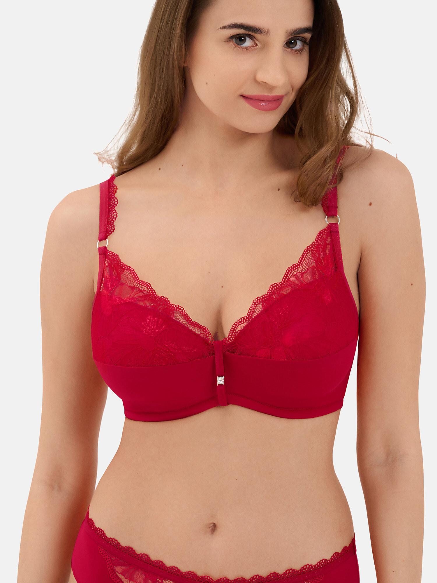 Der vorgeformte BH Sympathy aus der Lisca Kollektion ist für große Größen geeignet und verfügt über einen versteckten, integrierten Bügel. Die Spitze an der Oberseite der Cups setzt sich nahtlos bis zu den Spitzenträgern fort. Der funktionelle, gefütterte Rücken sorgt für eine gute Passform, auch bei großen Körbchengrößen. Das Verschlussband und die Träger sind für eine perfekte Passform verstellbar und in großen Größen breiter.