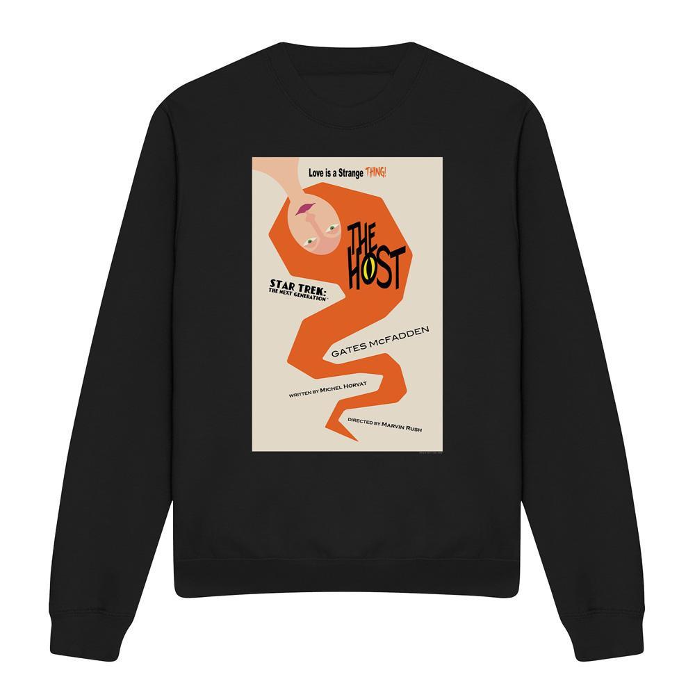 Dieses Sweatshirt zeigt einen einzigartigen Grafikdruck, inspiriert von "Star Trek: The Next Generation" Staffel 4 Episode 23, mit dem Titel "The Host". Das Design präsentiert eine stilisierte Darstellung der Themen der Episode und macht es zu einem unverwechselbaren Stück für Fans.