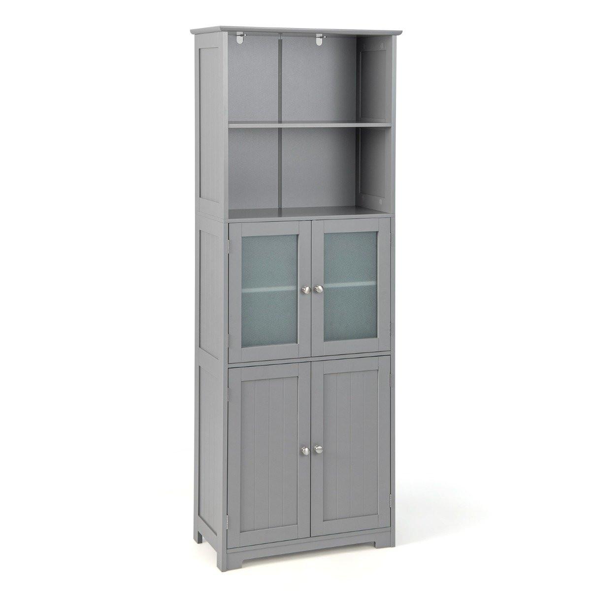 Northio 163 cm hoher Badezimmerschrank freistehender Vorratsschrank mit Glastüren & verstellbaren Regalen Grau