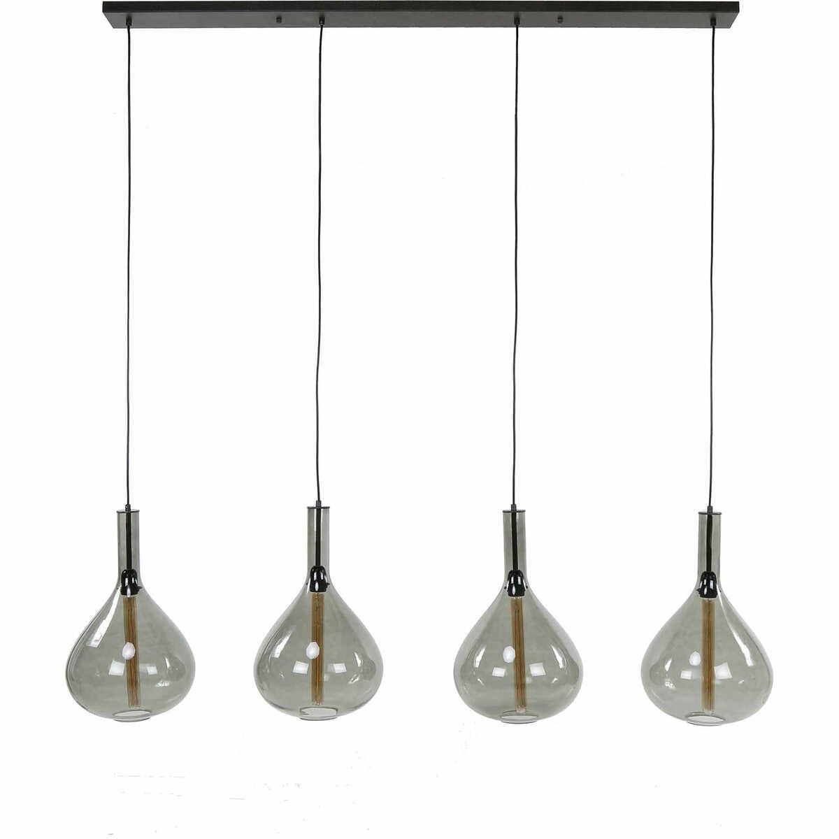Die schöne Hänglampe 'Drop Smoke' wird mit 4 Glasschirmen geliefert. Die Schirme sind in Rauchglas ausgeführt. Die Armatur ist in einem kunstvollen Schwarz gehalten. Die Lampe erzeugt viel Licht und leuchtet wunderschön! Die Schirme sind individuell in der Höhe verstellbar bis zu 150 cm.