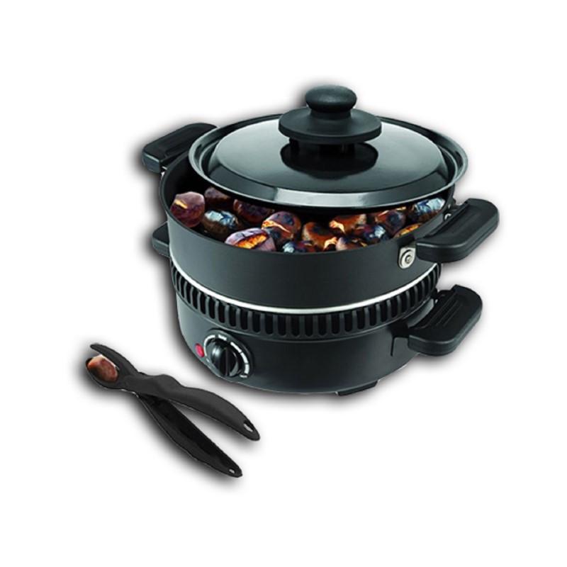 Mit dem SPC MR25 erhalten Sie ein 3 in 1 Multiröster aus hochwertigem Metallgehäuse für geröstete Marroni, Omeletten, Fleisch, Fisch und Gemüse.Gussplatte für Tischgrill mit HolzwenderMarroni-Aufsatz mit Deckel und ZangeMarronischneider für perfekten SchnittCrêpes Aufsatz mit SchieberWärme regulierbar über DrehradDas Gerät verfügt über ein regelbares Thermostat mit einer Bereitschaftsanzeige. Dank einem emailliertem Edelstahlgehäuse ist das Produkt leicht zu reinigen. Für eine einfache und sichere Handhabung sorgen die Touch Griffe an der Seite. Inklusive erhalten Sie für jede der Funktionen ein passendes Zubehör - eine Zange, ein Wender und ein Schieber.
