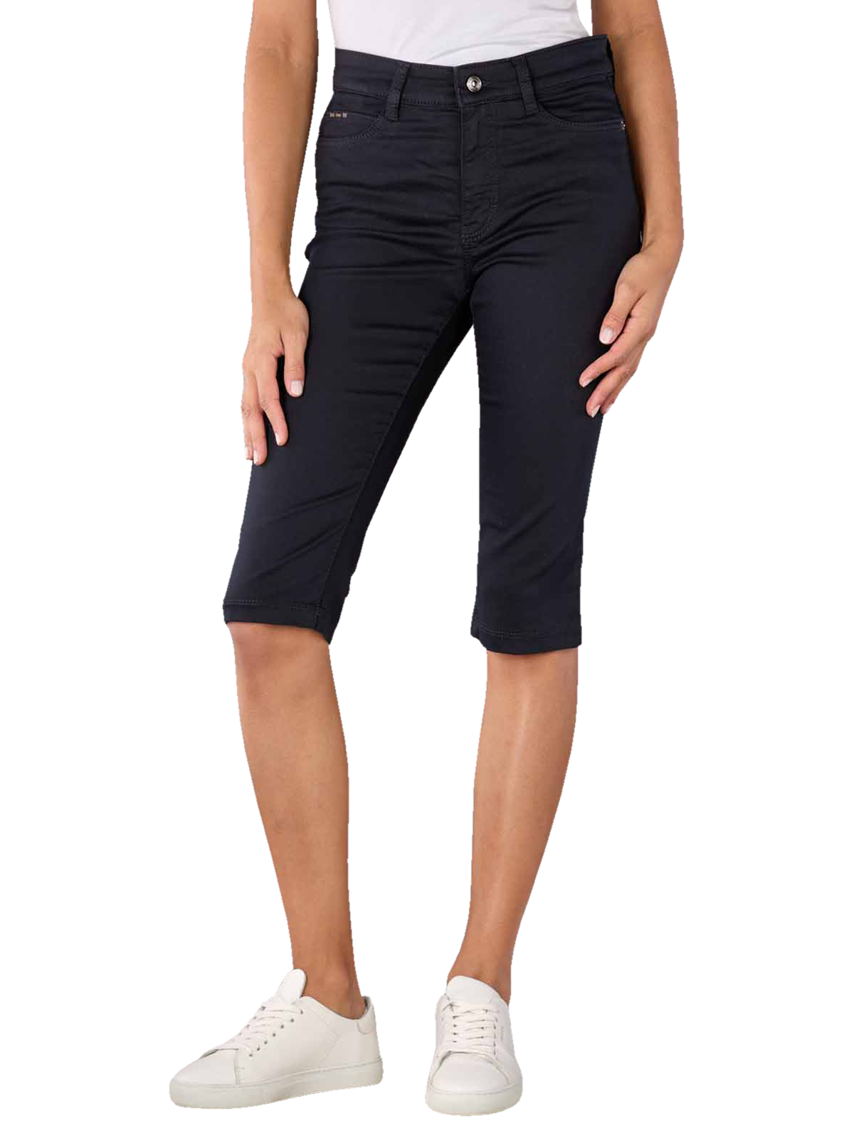 Diese anliegende Damen Capri Hose in Dunkelblau verfügt über einen hohen Stretchanteil, der dafür sorgt, dass sie trotz eng anliegender Passform bequem ist. Die Five-Pocket Kurzhose ist aus dünnem Stoff, der sie optimal für heisse Tage macht. Das Mac Cotton Logo befindet sich gut sichtbar am oberen hinteren Bund der Damen Hose. Sie ist Teil der Better Cotton Initiative (BCI).