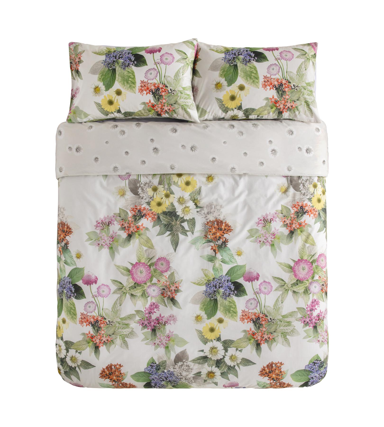 Der Jonie Duvetbezug präsentiert ein lebhaftes Blumenmuster, das jedem Schlafzimmer eine frische und lebendige Note verleiht. Das Design zeigt eine Vielzahl von farbenfrohen Blumen und Blättern, die eine einladende und fröhliche Atmosphäre schaffen.