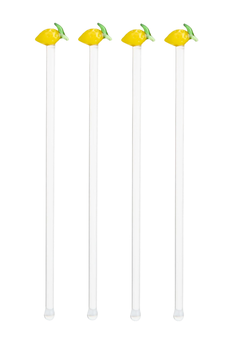 Mit dem Cocktail-Rührstäbchen-Lemon-4er-Set von Uberstar verleihst du jedem Getränk das gewisse Etwas. Die glasklaren Stäbchen aus hochwertigem Glas sind an der Spitze mit kleinen, handgefertigten Zitronen versehen, samt grüner Blätter und feinem Gelbton. Ein liebevolles Detail, das jedes Glas sofort aufwertet – vom Aperitif bis zum Eistee. Mit einer Länge von 20 cm eignen sich die Rührstäbchen perfekt für hohe Gläser und Longdrinks. Ob Cocktails, Mocktails, Limonaden oder Eiskaffee – diese stilvollen Helfer sorgen für Bewegung im Glas und setzen gleichzeitig einen sommerlichen Akzent. Durch ihr klares Design und die dezenten Farbtupfer fügen sie sich harmonisch in jede Tischdekoration ein. Und auch praktisch punkten die Rührstäbchen: Sie sind spülmaschinengeeignet (oberes Fach) und somit auch für den regelmässigen Einsatz bestens geeignet. Ein charmantes Geschenk oder einfach ein kleines Upgrade für die eigene Hausbar.