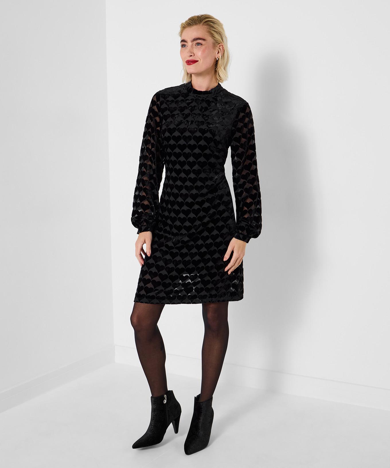 Dieses wunderschöne Devore-Kleid mit Herzmotiv beeindruckt mit einer tollen Silhouette. Es verfügt über einen hohen Ausschnitt und lange Ärmel, wodurch es für verschiedene Anlässe geeignet ist.