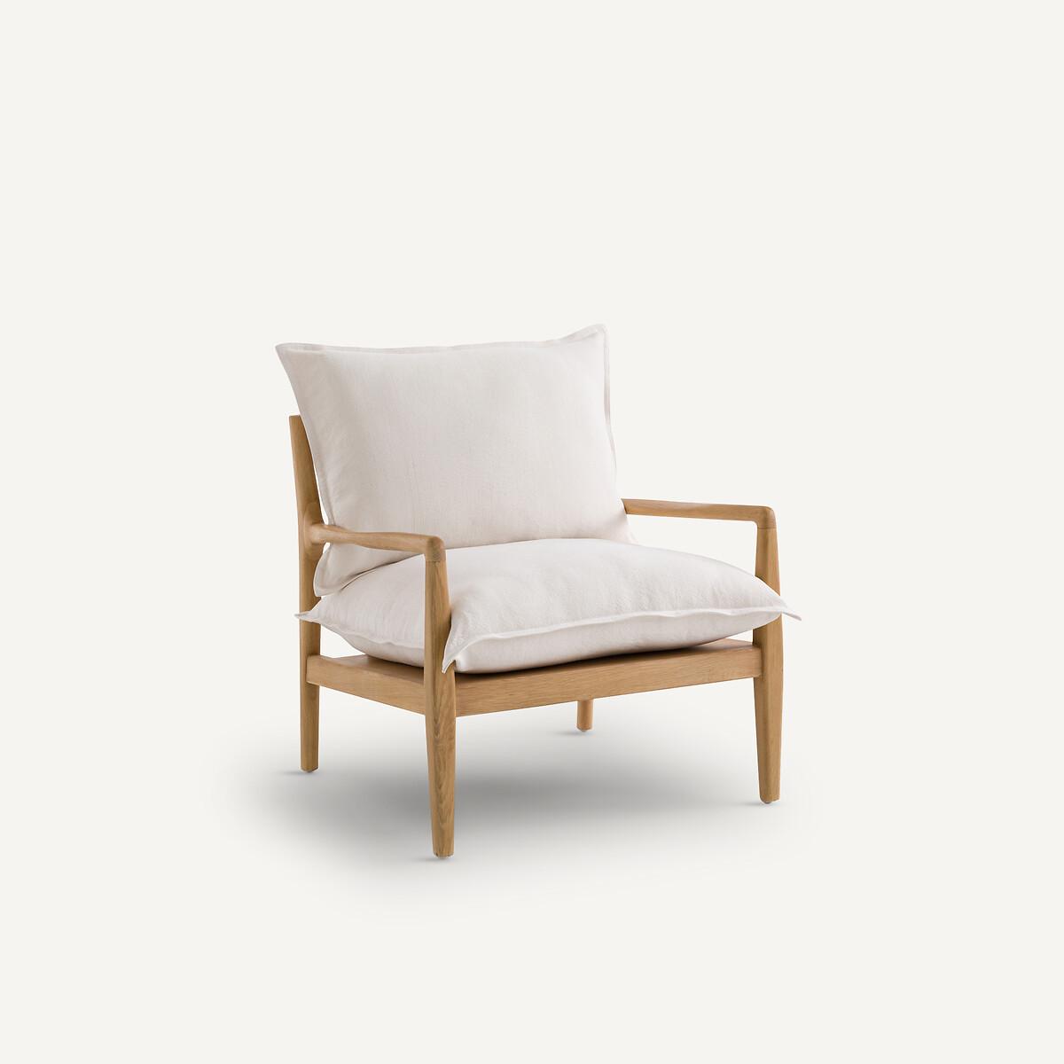 Der Sessel Dilma zeichnet sich durch das schlichte Gestell aus massivem Eichenholz aus. Das harmonische Design mit geformten Armlehnen und abgerundeten Ecken erinnert an skandinavische Sessel der 50er-Jahre.