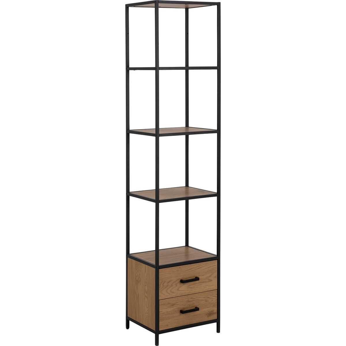 Das Standregal Multiple Bronx ist ein robustes und stilvolles Möbelstück für Ihr Zuhause. Der Korpus und das Gestell sind aus matt schwarz rau pulverbeschichtetem Stahl gefertigt, der dem Regal eine moderne Optik verleiht. Es verfügt über 2 Schubladen und 3 Böden, die ausreichend Platz für Ihre Bücher Dekorationsgegenstände und andere persönliche Gegenstände bieten. Die Schubladen ermöglichen eine praktische Aufbewahrung, während die Metallschienen eine reibungslose Bewegung gewährleisten. Das Standregal kombiniert Funktionalität und Ästhetik und wird sicherlich eine Bereicherung für Ihr Zuhause sein.ProduktinformationFarbe: braun, schwarz matt42x35x185 cmBeinhöhe: 6.8 cmAnzahl Schubladen: 2Schubladeninnenmass: B:34,6 cm/T:28,8 cm/H:6,6 cmMax. Belastbarkeit pro Schublade: 10kgAnzahl Böden: 3 StückBodenmass: 3 x B:38,7 cm/T:31,7 cmMax. Belastbarkeit pro Boden: 10 kg