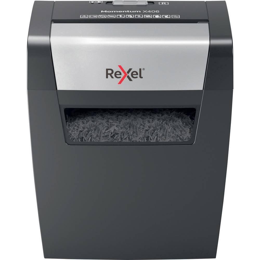 Mühelos alles schreddern, was anfällt! Der Rexel Momentum X406 Aktenvernichter schreddert bis zu 6 Seiten gleichzeitig. Mit einer Laufzeit von 3 Minuten ist er das ideale Gerät für zuhause. Sicherheitsstufe P4, Partikelschnitt 4 x 28 mm. 15-Liter-Abfallbehälter (125 DIN-A4-Seiten)