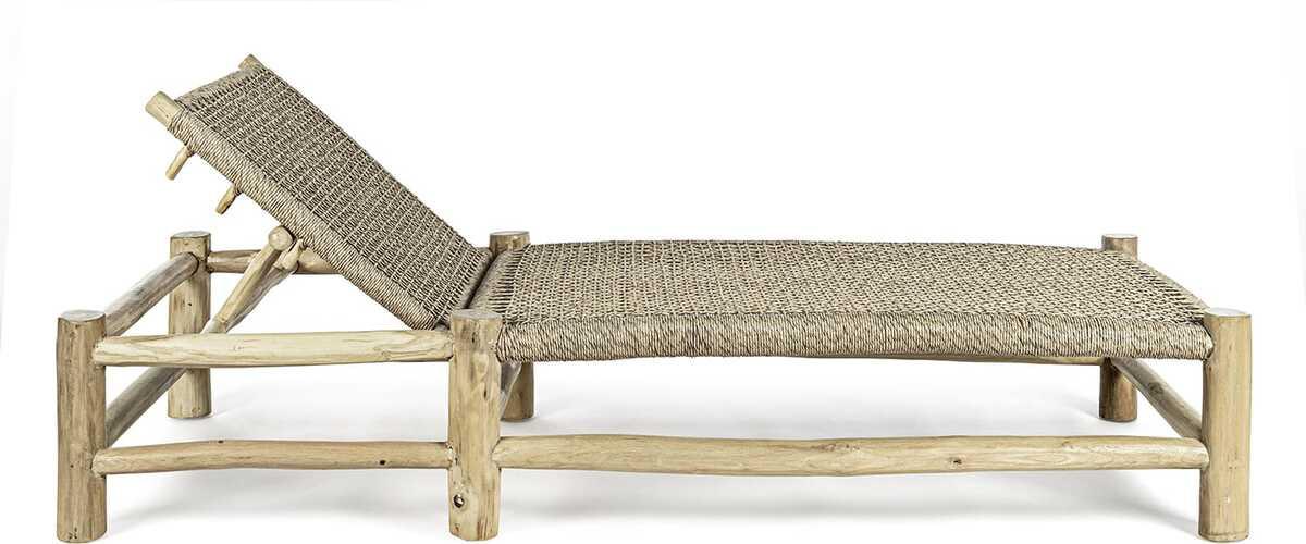 Garten Liege Lampok. Gestell aus Teakholzästen, Sitzfläche und Rückenlehne aus Kunstfasergeflecht (Viro). Verstellbare Rückenlehne (4 Positionen). Es wird empfohlen, den Artikel nicht direktem Sonnenlicht und schlechter Witterung auszusetzen. Hinweis: Abbildungen nur indikativ. Jeder Artikel ist durch die natürlich gewachsene Farbe und Form des Holzes einzigartig. Risse und kleine Sprünge in der Struktur sind als natürliche Merkmale des Produkts zu betrachten.