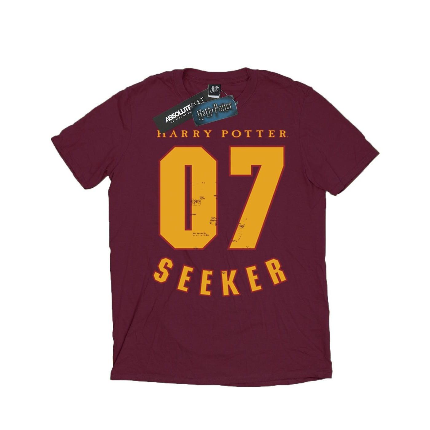 Dieses T-Shirt präsentiert sich in einem klassischen Design mit Rundhalsausschnitt und kurzen Ärmeln. Die Vorderseite des Shirts zeigt «HARRY POTTER.» über einer grossen «07» und «SEEKER» in einer verwaschenen gelben Schrift, auf einem satten kastanienbraunen Hintergrund.