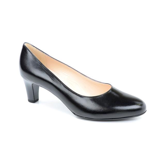 Die Nika Pumpen der Marke Peter Kaiser sind die perfekte Wahl für Partys, Events oder das Büro. Diese eleganten Pumpen sind aus hochwertigem Leder gefertigt und bieten stilvolles Styling und raffinierte Mode. Das polierte Obermaterial aus Leder verleiht ein luxuriöses Tragegefühl, während das Lederfutter für Weichheit und Komfort für den Fuß sorgt. Die Ledersohle ist auch weich und komfortabel. Die Gummisohle bietet Leichtigkeit und Flexibilität und bietet gleichzeitig eine solide Basis für die Fersen. Die Fersen messen 50 mm und bieten eine bescheidene Höhe, die perfekt für formelle Anlässe geeignet ist. Die minimalistischen Details an den Rändern tragen zu seinem eleganten Erscheinungsbild bei. Die schwarze Farbe ist eine klassische und vielseitige Option, die sich an viele Gelegenheiten anpasst. Nika Pumpen sind eine intelligente Wahl für Frauen, die einen schicken und eleganten Stil für ihre Abende, Veranstaltungen oder für einen Bürotag suchen.