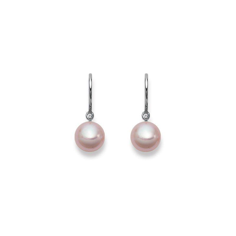 MUAU Schmuck Ohrhänger Weissgold 750 Süsswasserperle 22x8.5-9mm