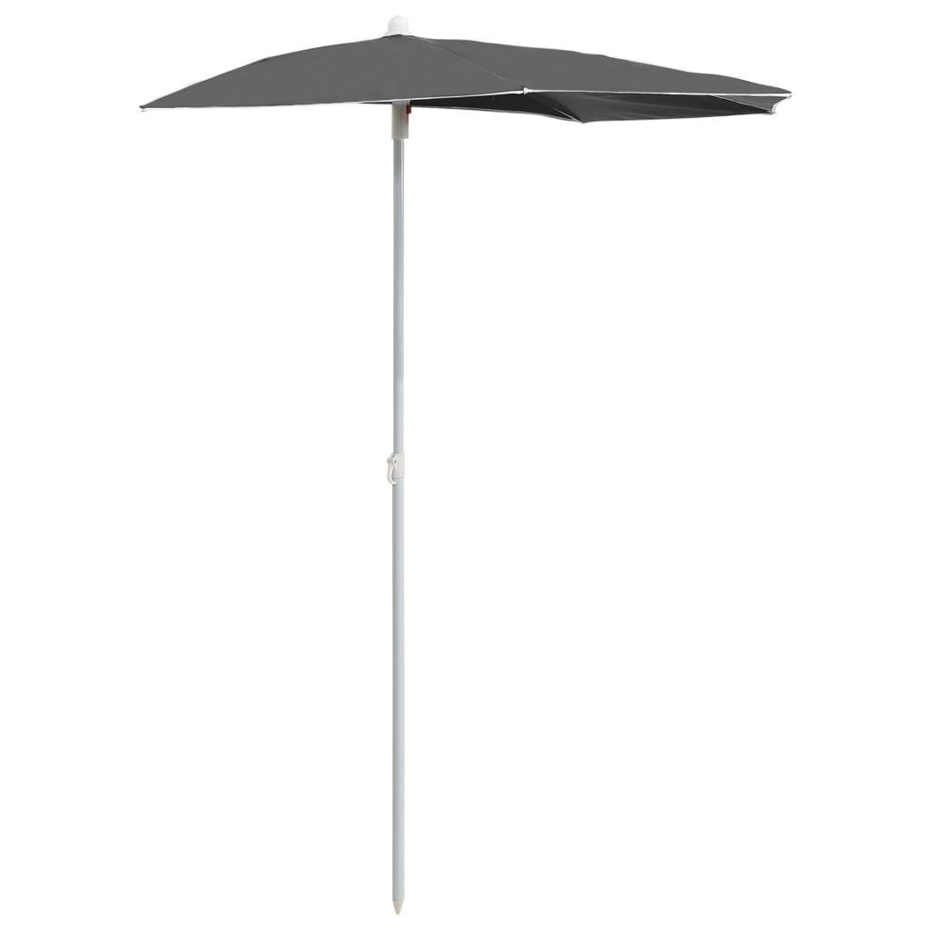 Aus UV-beständigem und verblassfestem Polyester gefertigt, bietet dieser pflegeleichte Sonnenschirm optimalen Schutz vor schädlichen Sonnenstrahlen. Sein halbrundes Design trägt ebenfalls zum einzigartigen Charme des Schirms bei. Der starke Stahlmast, zusammen mit den 5 stabilen Rippen, macht den Garten-Sonnenschirm sehr stabil und langlebig. Dieser Sonnenschirm lässt sich leicht öffnen und schließen.