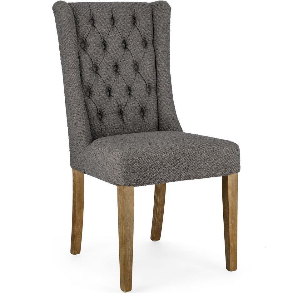 Stuhl aus Polyester und Eichenholz, Farbe Grau und Natur, 51 x 63 x 104h cmGestell aus EichenholzBezug aus Polyester In Boucle'-OptikFüllung aus PU-SchaumDichte: Sitzfläche 30kg/m3, Rückenlehne 25kg/m3gesteppte Rückenlehne