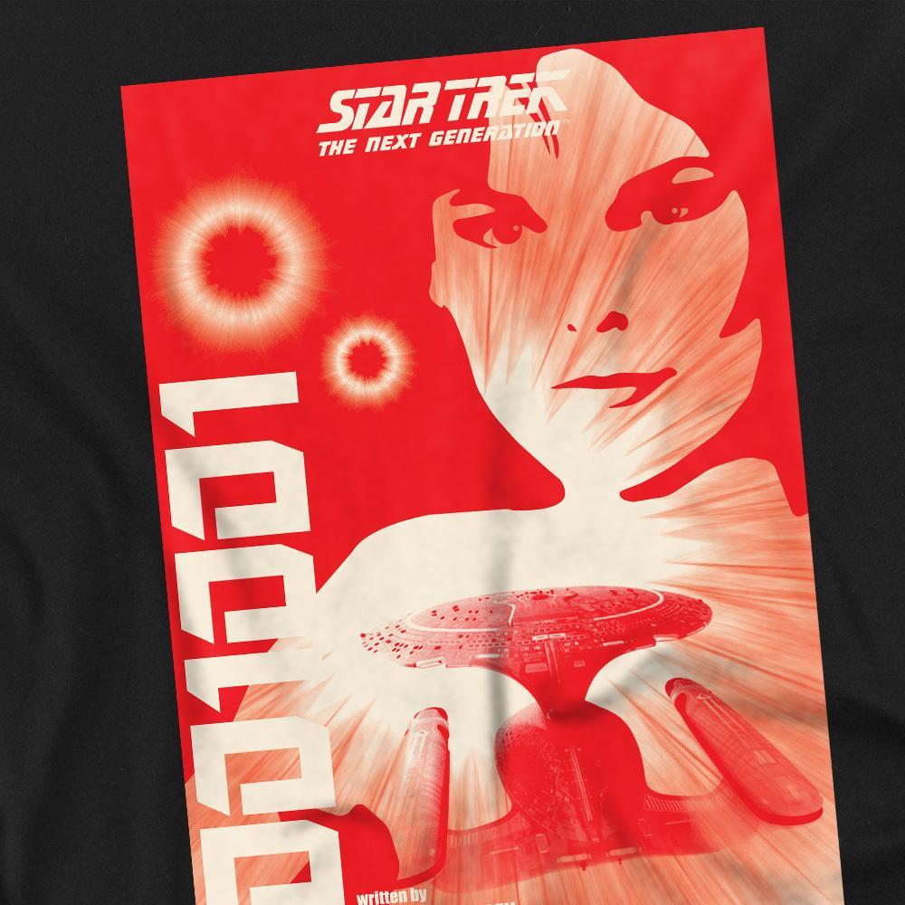 Dieses T-Shirt zeigt einen Grafikdruck, inspiriert von Star Trek: The Next Generation Staffel 1 Episode 15. Das Design fängt die Essenz der ikonischen Serie ein und ist eine unverwechselbare Ergänzung für jede Fan-Sammlung.